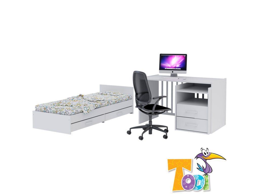 - Zmení sa na junior posteľ, písací stôl a kontajner k písaciemu stolu.
