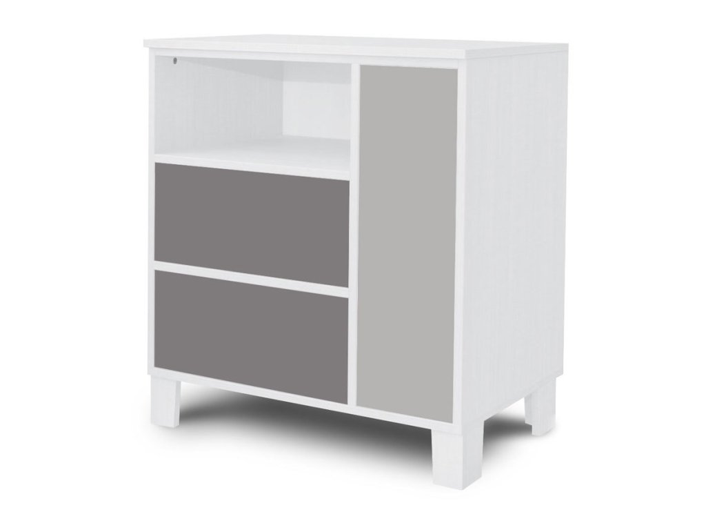 Komoda poskytuje dostatok priestoru na všetko potrebné, v hornej časti otvorená polička pre veľmi frekventované potreby, nižšie uzavretá časť chrániaca pred prachom. Komoda je optimálne vysoká pre pohodlné prebaľovanie. V prípade využitia na prebaľovanie a ďalšiu starostlivosť o dieťa, je nevyhnutné dokúpiť prebaľovací nadstavec zväčšujúci hornú plochu komody a navyše vybavený bočnými bezpečnostnými zarážkami, ktoré zabraňujú posunutiu samostatne dokupovanej prebaľovacej podložky mimo komodu.