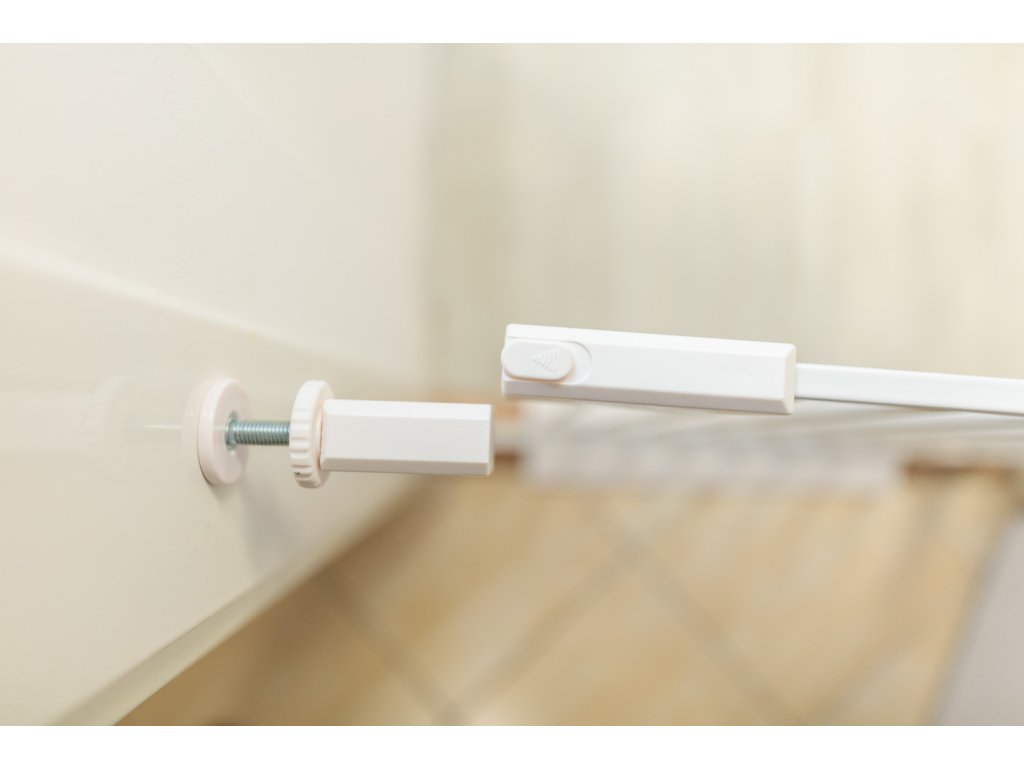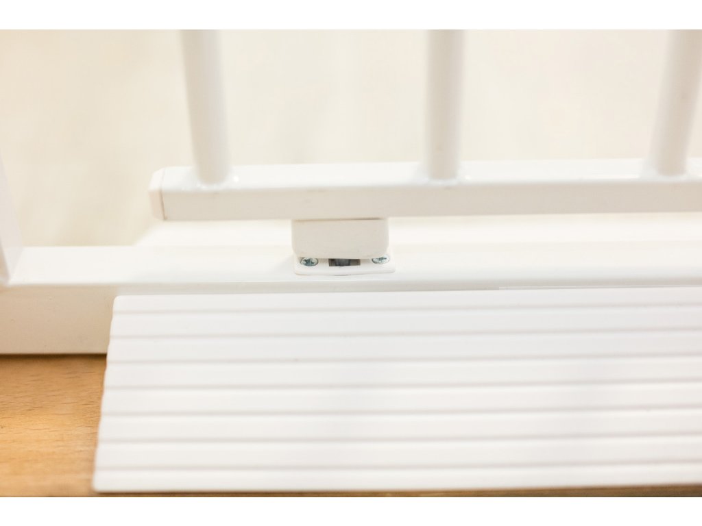 Pevný rám v tvare písmena "U" umožňuje rozpernú montáž. Zábranu možno teda ľahko nainštalovať bez vŕtania. Samotná zábrana je určená pre otvory od 75 cm do 81 cm. Súčasťou balenia je aj predĺženie zábrany, pomocou ktorého je možné zábranu namontovať do otvorov so šírkou 87–93 cm, a ďalej rampa, ktorá uľahčí priechod cez zábranu. Zábrana má kvalitnú kovovú konštrukciu v bielom prevedení. Ľahko sa otvára jednou rukou a má automatický systém zatvárania SMART CLOSE. Spĺňa normu EN 1930: 2011 a ASTM F1004-13 a je vhodná pre použitie u detí do 24 mesiacov.