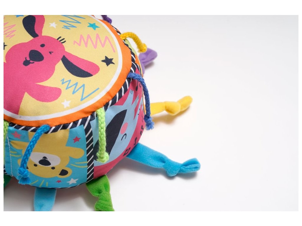 Zmysly: Hračka stimuluje zmyslový vývoj, keď deti skúmajú textúry šnúrok a bubna, čo povzbudzuje ich zvedavosť.