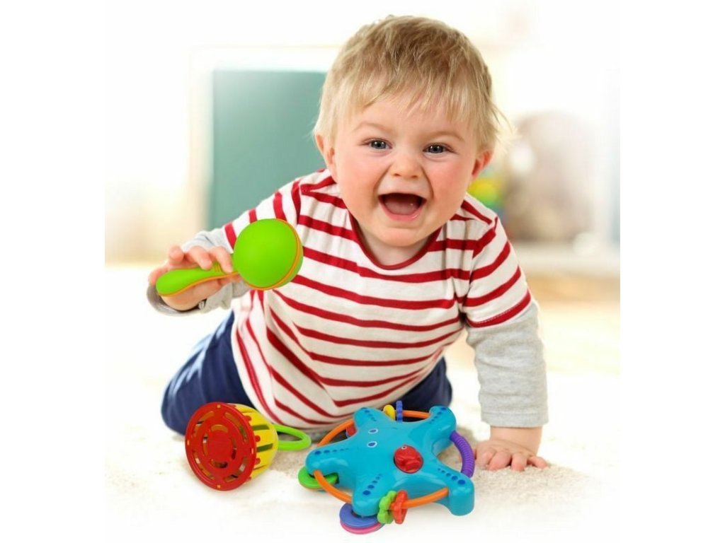 Povzbudzujte dieťa, aby potriaslo hračkami a počúvalo zvuk.