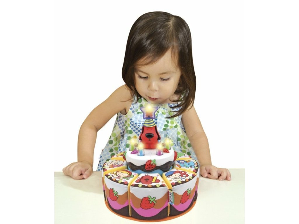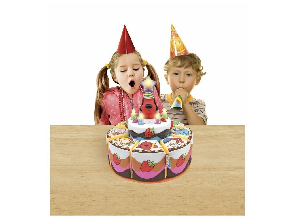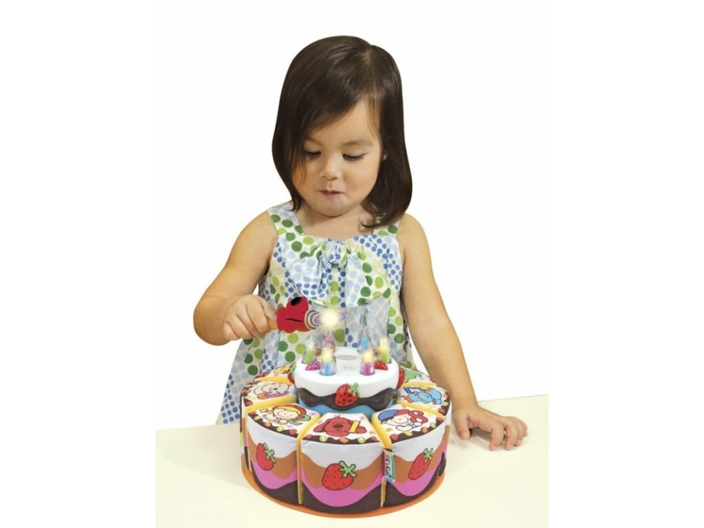 Postup: Naučte dieťa stlačiť tlačidlo na čarovnej paličke a zapáliť sviečky. Po zapálení všetkých sviečok sa prehrá narodeninová pieseň.