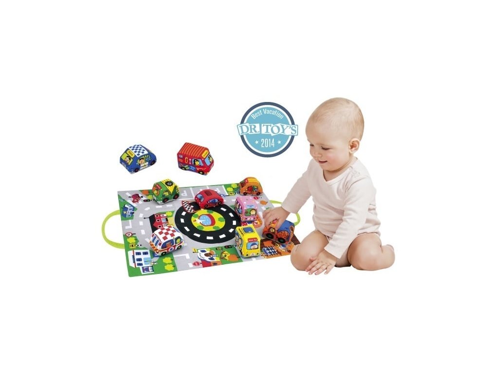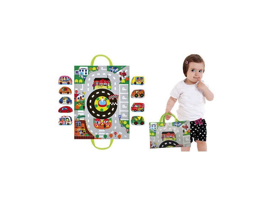Táto vzdelávacia hračka v podobe podložky s autami predstavuje miniatúrne mesto plné rôznych miest a budov, vrátane školy a hasičskej stanice. Súprava obsahuje 9 mäkkých, viacfarebných áut, ktoré predstavujú rôzne povolania a čísla. Hračka podporuje rozvoj jemnej aj hrubej motoriky, kognitívnych schopností a sociálneho vývoja prostredníctvom hry na roly a zvedavého objavovania.