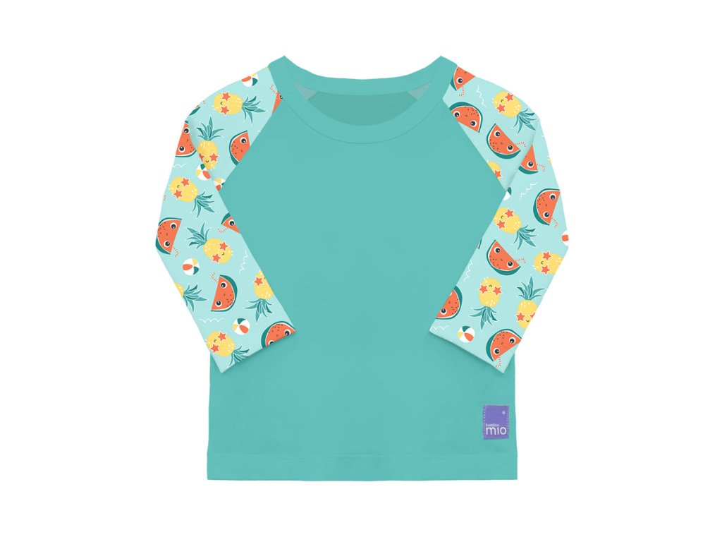 - Odolný materiál a dlhé rukávy poskytujú ochrannú vrstvu proti slnku, piesku, vode a možným odreninám na pokožke dieťaťa.