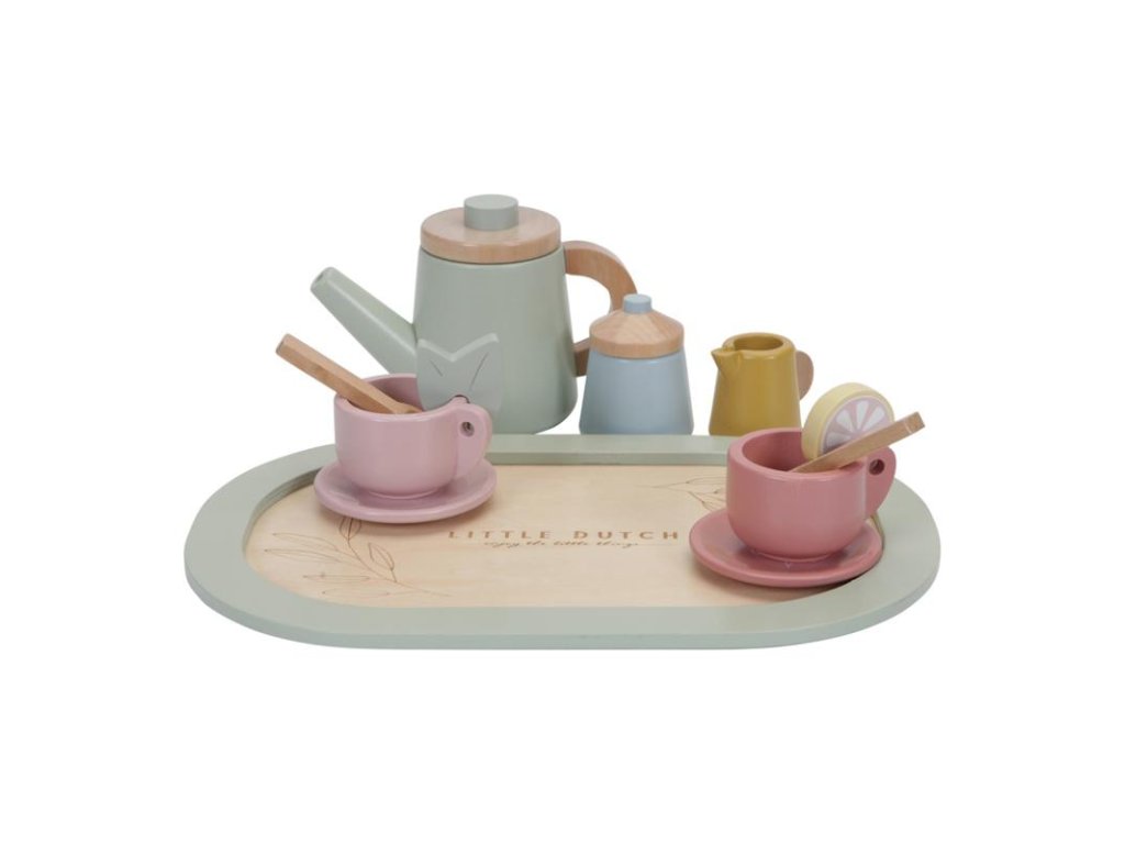 Drevený čajový servis Little Dutch by nemal chýbať žiadne gazdinke, rovnako ako napríklad kávovar kuchynka, sendvičovač, ai ... Bude to prima zábava, pre deti i dospelých. Súčasti balenia čajového servisu sú: 2 čajové šálky, čajová kanvica, cukornička, 2 lyžičky, 2 podšálky, džbán na mlieko a tácku.