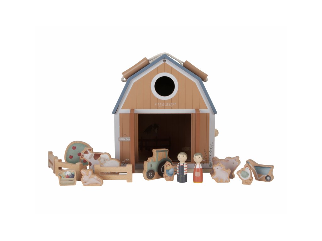 LITTLE DUTCH Domček pre bábiky drevený prenosný Farma