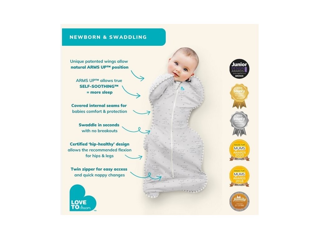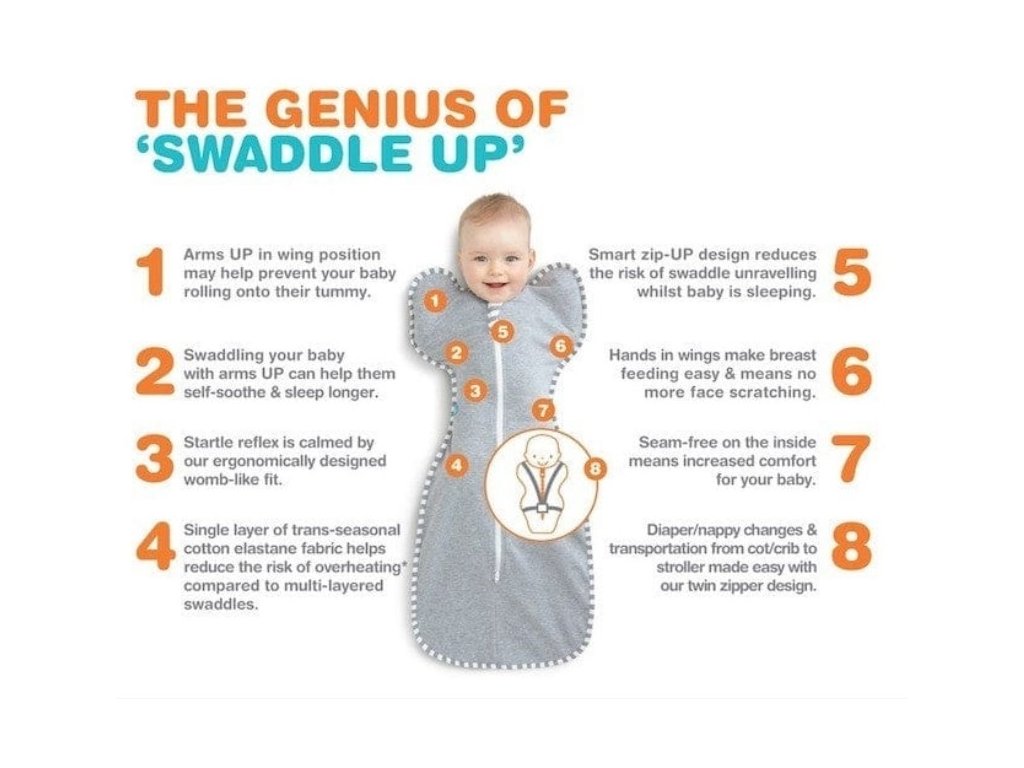 Jediná zavinovačka, ktorá umožňuje bábätku spať v prirodzenejšej polohe - s rukami hore. Zavinovačku Swaddle UP™ vždy vyberajte podľa hmotnosti dieťaťa, nie podľa veku.