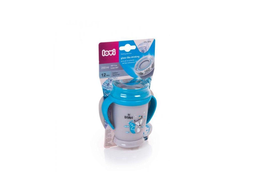 LOVI Hrnček 360° JUNIOR 250ml s úchytkami INDIAN, modrý