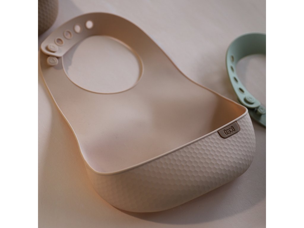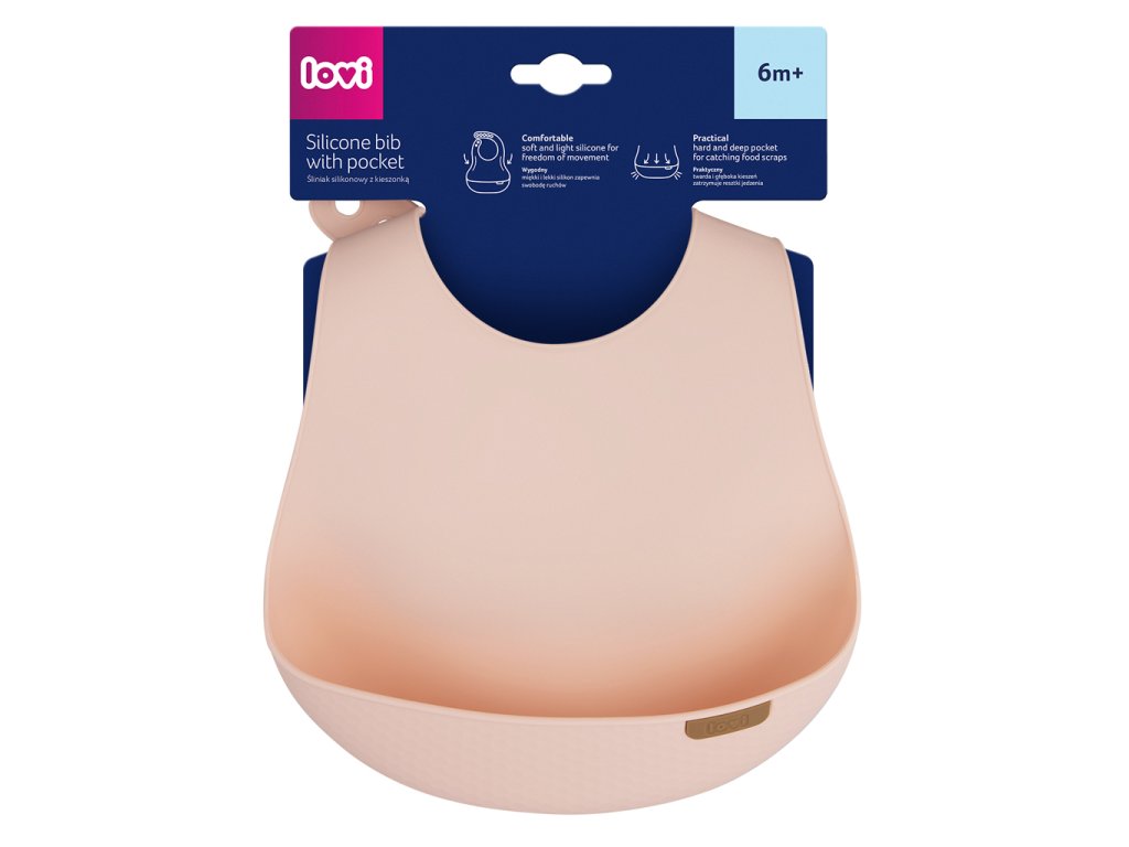 LOVI Silikónový podbradník s vreckom je veľkým pomocníkom pre rodičov - chráni pred nečistotami v čase, keď sa dieťa učí samostatne jesť. Je vyrobený z ľahkého, mäkkého a bezpečného silikónu. Pevné a hlboké vrecko zachytáva zvyšky jedla, pohodlne obopína bruško a zasahuje doširoka do bokov bábätka. Nastaviteľná spona a ergonomický tvar podbradníka, najmä jeho tvarovanej strany, zaisťujú voľnosť pohybu. Podbradník má originálny dizajn vďaka unikátnej štruktúre vrecka a tiež sa ľahko čistí a je vhodný do umývačky.