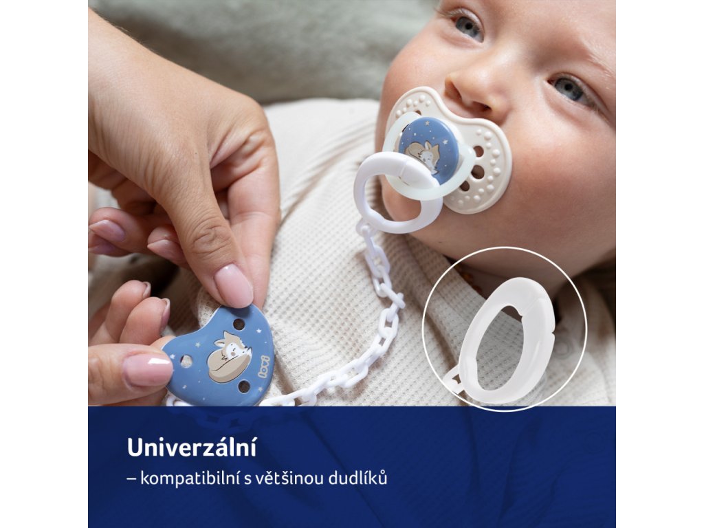 Vaše dieťa sa nikdy nerozlúči so svojím obľúbeným cumlíkom? Nezabudnite zakúpiť retiazku na cumlík LOVI, ktorá zabráni strate pokladu dieťaťa. Retiazka na cumlík LOVI má veľmi praktický a pevný klip, ktorý umožňuje bezpečné a stabilné pripevnenie cumlíka k oblečeniu dieťaťa. Chráni cumlík pred znečistením alebo stratou. Bezpečný, zaoblený tvar tiež eliminuje riziko poškriabania alebo zranenia vášho dieťaťa Držiak na cumlík LOVI neobsahuje BPA.