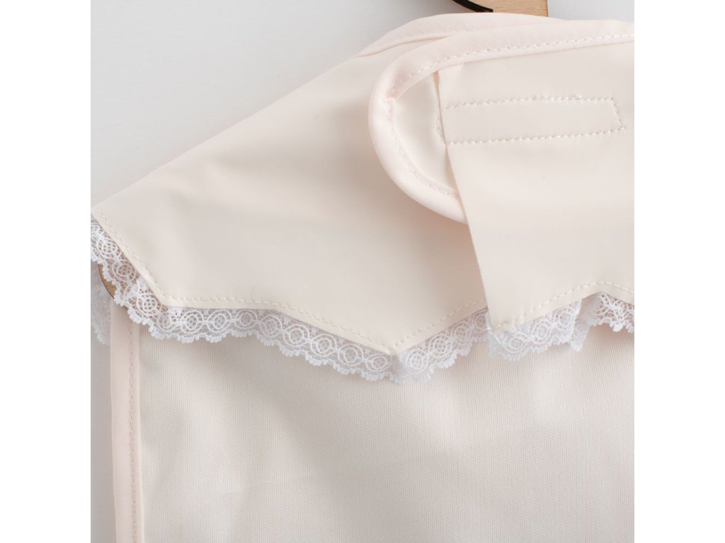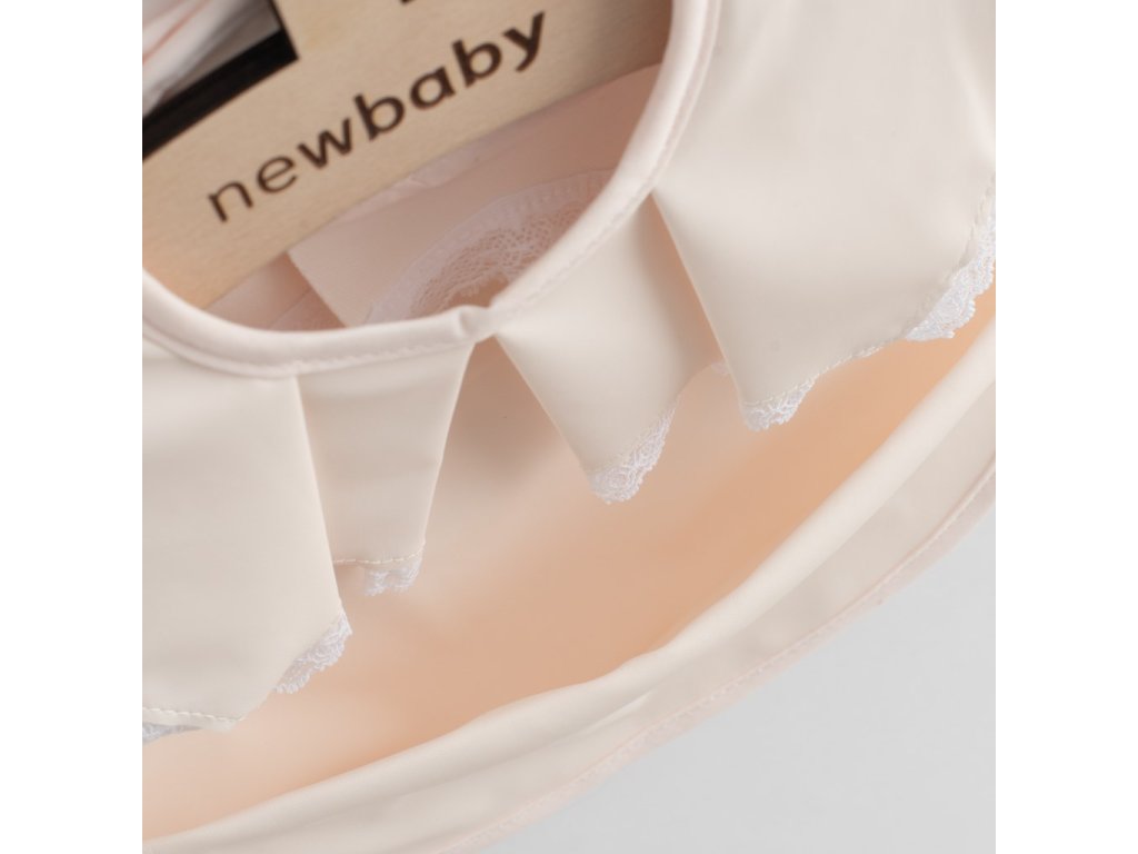Luxusný dievčenský podbradník s krajkou New Baby účinne ochráni oblečenie vášho dieťaťa pred ušpinením pri jedle a hraní. Vyrobené z ľahkého, mäkkého a ľahko umývateľného materiálu. Podbradník má pohodlné zapínanie na suchý zips a praktické vrecko. Vrecko je ušité z dvoch vrstiev materiálu. Pri zašpinení je možné podbradník utrieť vlhkou handričkou, alebo vyprať v pračke.