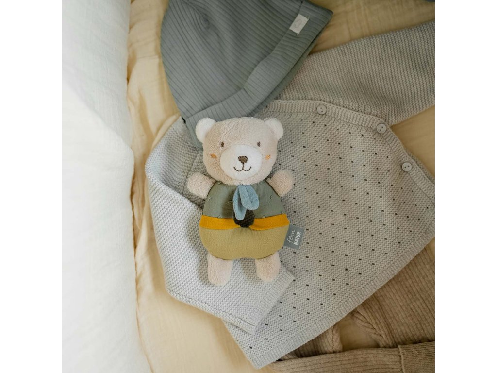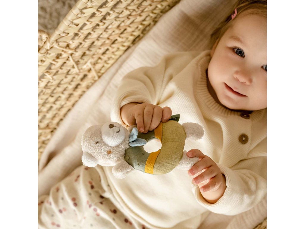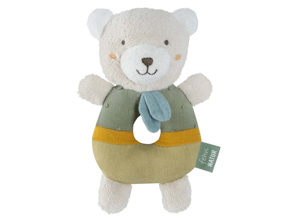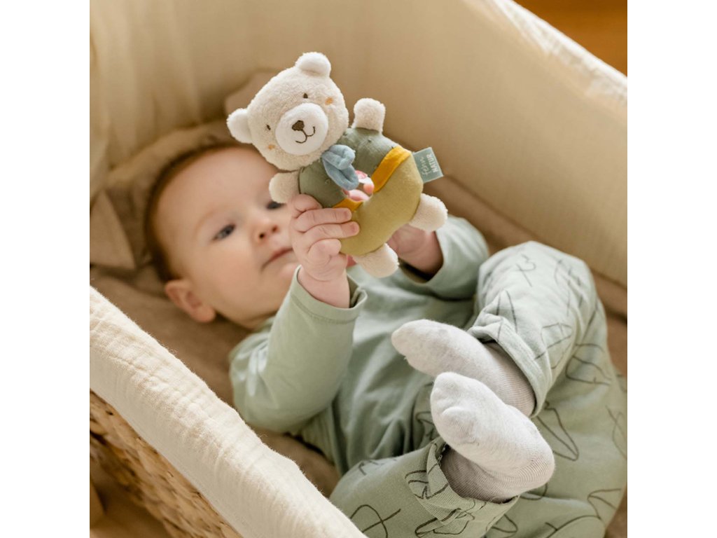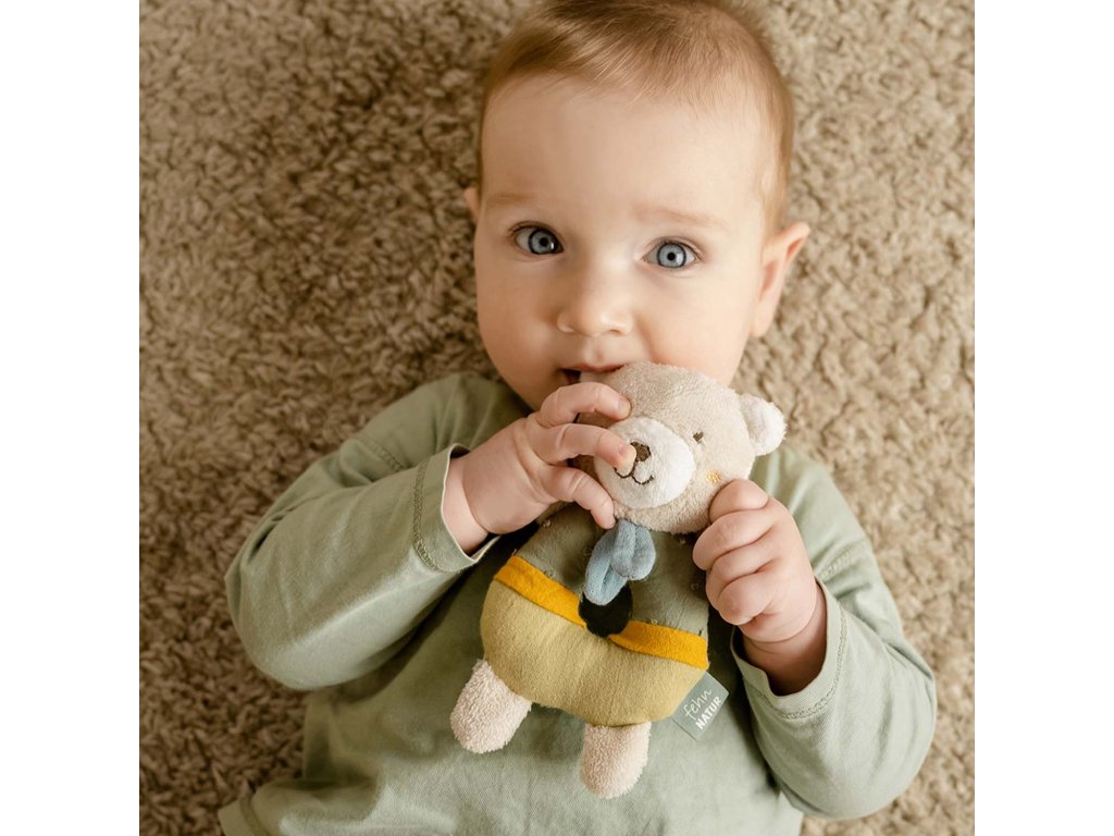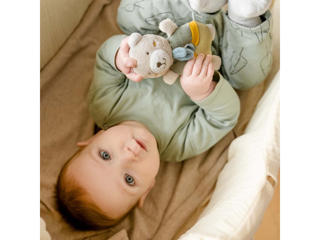 Vypchatý plyšák s hrkálkou podporuje hmat,