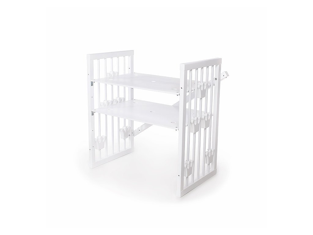 - 4 výškové polohy roštu postieľky: 14 cm, 34 cm, 50cm a 66 cm od zeme