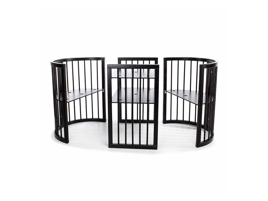 Detská postieľka-transformer Mimiko je vyrobená z masívu a vysoká kvalita zaistí postieľke dlhú životnosť. Vďaka jednoduchému a nadčasovému dizajnu sa hodí do každej domácnosti. Je praktická, bezpečná, šetrí miestom a je jednoduchá v údržbe. Rastúca postieľka ponúka varianty transformácií, ktoré dokonale vyhovujú potrebám dieťaťa rôzneho veku. 1 - okrúhla postieľka / kolíska 77 x 77 cm (vnútorné rozmery 72 x 72 cm), výška postieľky bez koliesok 80 cm, na kolieskach / na hojdacích lištách 84 cm 2 - pultík s dvoma poličkami, vhodný pre úschovu detských vecí, o rozmeroch 53 x 77 cm (vnútorné rozmery 48 x 72 cm) 3 - oválna postieľka 77 x 125 cm (vnútorné rozmery 72 x 120 cm), výška postieľky bez koliesok 80 cm, na kolieskach / na hojdacích lištách 84 cm 4 - hracia ohrádka 77 x 125 cm (vnútorné rozmery 72 x 120 cm) 5 - detská pohovka 77 x 125 cm (vnútorné rozmery 72 x 120 cm) 6 - pohovka väčší variant 77 x 173 cm (vnútorné rozmery 72 x 168 cm) 7 - 2 stoličky 38 x 77 cm s detským stolíkom 53 x 77 cm Ďalšie vlastnosti: - súčasťou balenia sú plastové kolieska v čiernej farbe s brzdou a hojdacie lišty, ktoré umožňujú mierne kolísanie - vzdialenosť medzi tyčami je 5 cm, čo vylučuje možnosť náhodného zaseknutia končatín dieťaťa - 4 výškové polohy roštu postieľky: 14 cm, 34 cm, 50cm a 66 cm od zeme