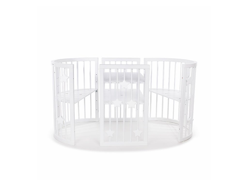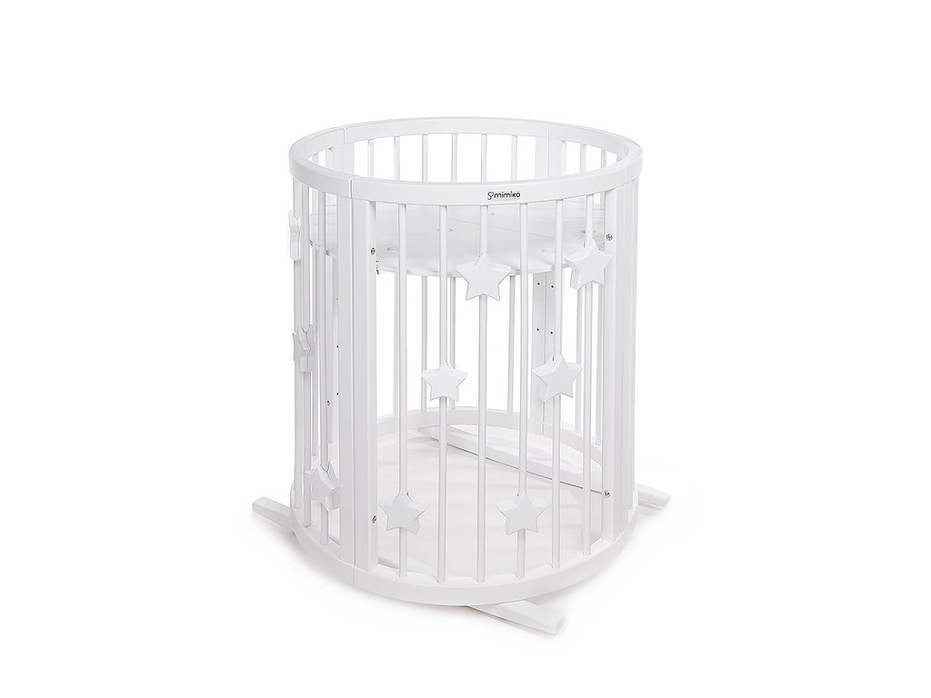 1 - okrúhla postieľka / kolíska 77 x 77 cm (vnútorné rozmery 72 x 72 cm), výška postieľky bez koliesok 80 cm, na kolieskach / na hojdacích lištách 84 cm
