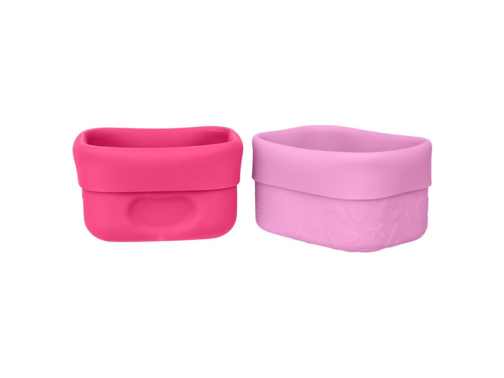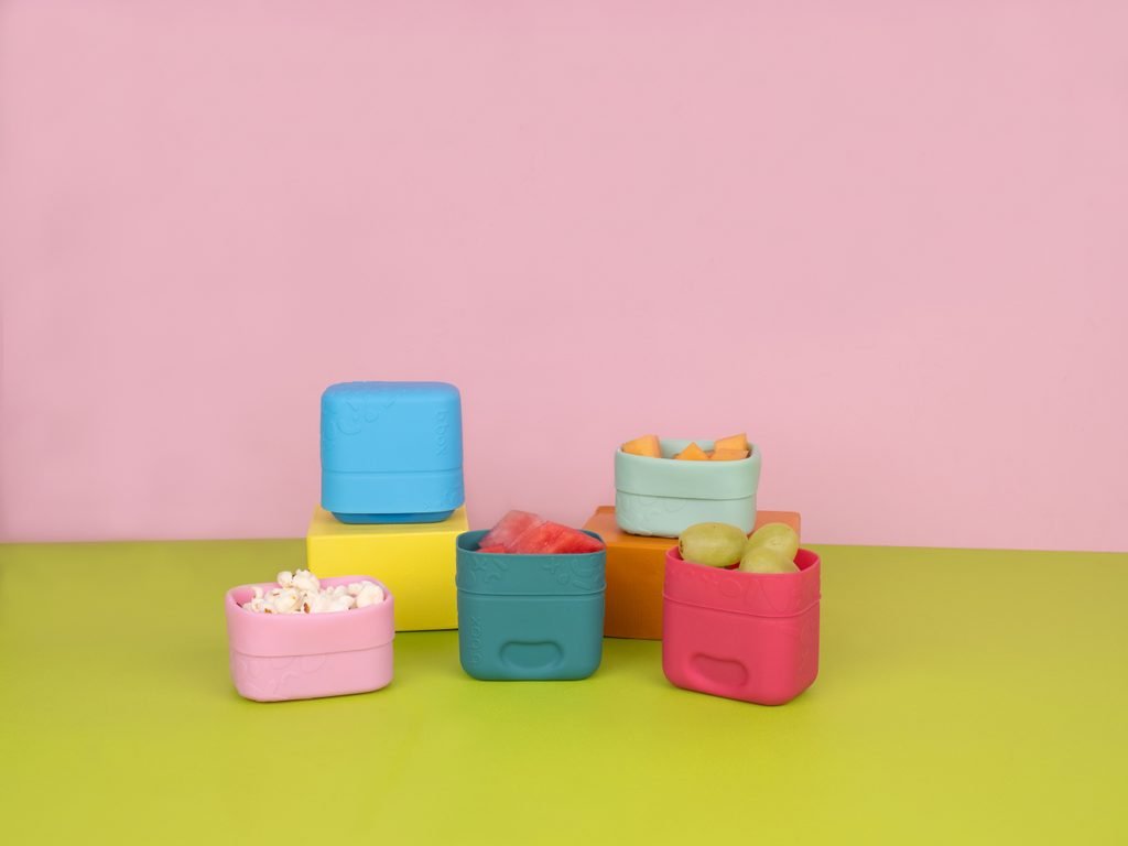 Každé balení obsahuje dva kelímky, a to základnu a víčko. Tyto víceúčelové silikonové krabičky na svačinu lze používat i samostatně; jako kelímek a víčko na svačinu nebo jako formičky na pečení. Silikonové kelímky mohou být používány v plné velikosti nebo složené a jsou ideální pro oddělování a ukládání potravin velikosti sousta nebo oblíbených dipů.