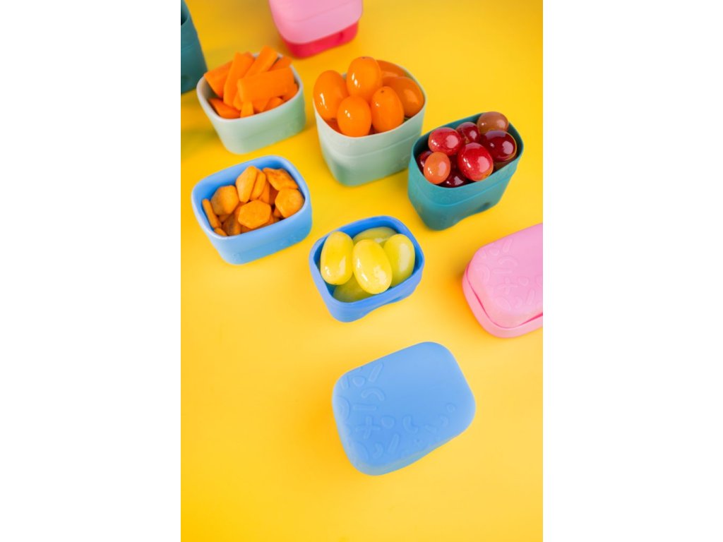 Každé balení obsahuje dva kelímky, a to základnu a víčko. Tyto víceúčelové silikonové krabičky na svačinu lze používat i samostatně; jako kelímek a víčko na svačinu nebo jako formičky na pečení. Silikonové kelímky mohou být používány v plné velikosti nebo složené a jsou ideální pro oddělování a ukládání potravin velikosti sousta nebo oblíbených dipů.