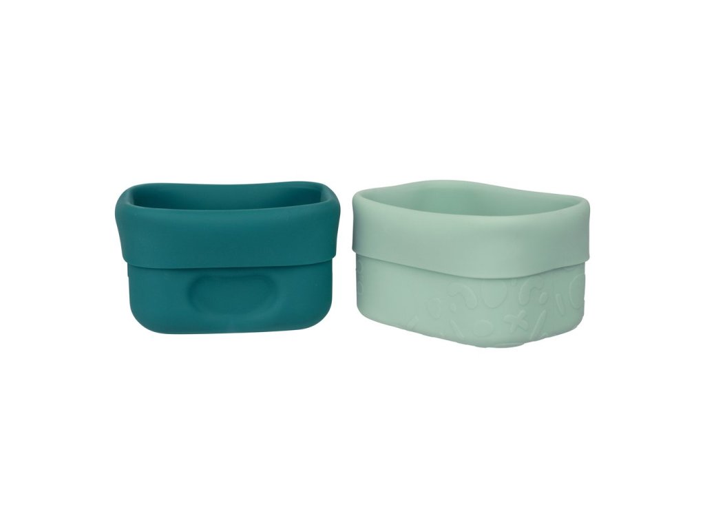 Každé balení obsahuje dva kelímky, a to základnu a víčko. Tyto víceúčelové silikonové krabičky na svačinu lze používat i samostatně; jako kelímek a víčko na svačinu nebo jako formičky na pečení. Silikonové kelímky mohou být používány v plné velikosti nebo složené a jsou ideální pro oddělování a ukládání potravin velikosti sousta nebo oblíbených dipů.