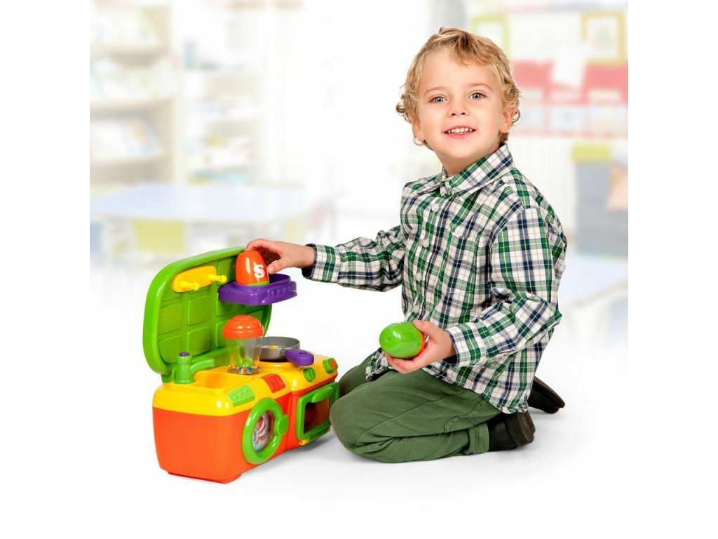 Mini kuchár má rôzne kuchynské a iné doplnky, s ktorými sa dieťa môže pokúšať o prípravu vlastného jedla. Hračka funguje na batérie vďaka ktorým spotrebiče vydávajú typické zvuky a dokonca svietia.
