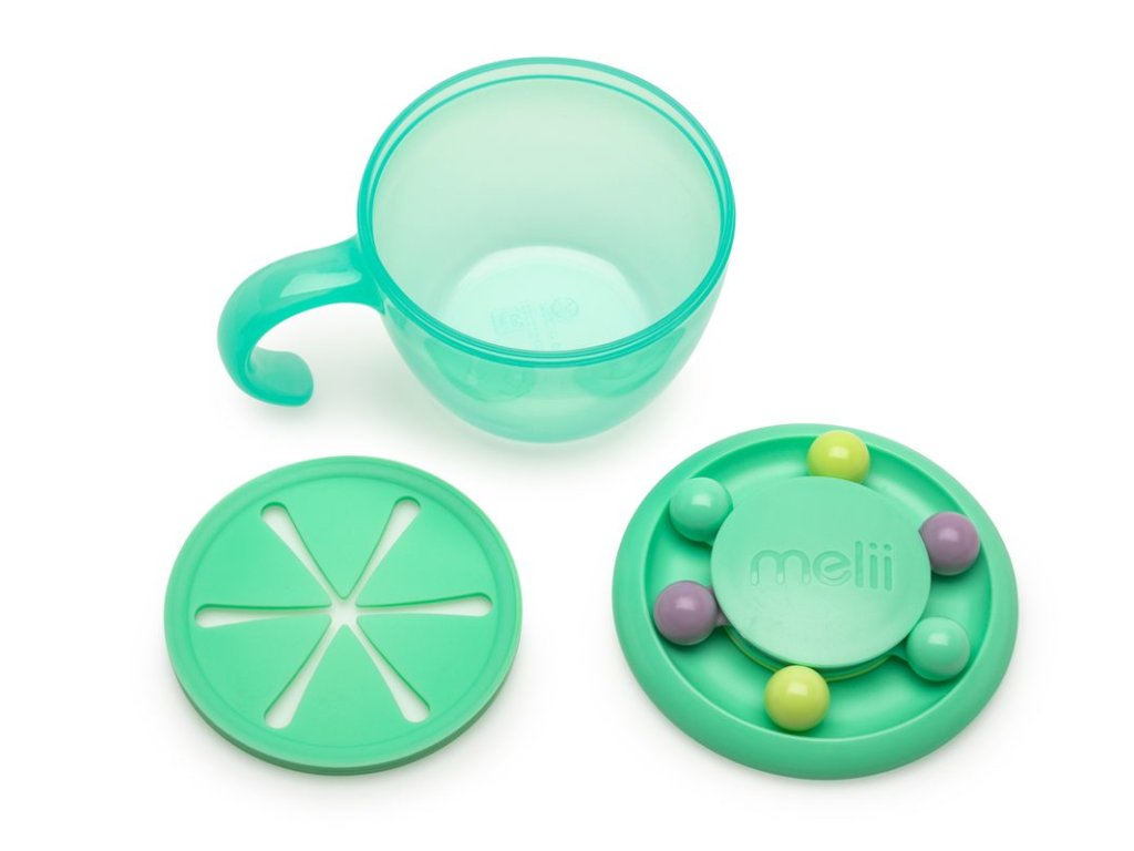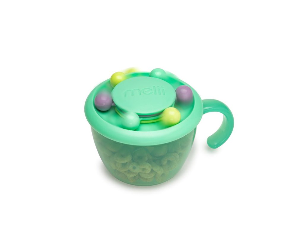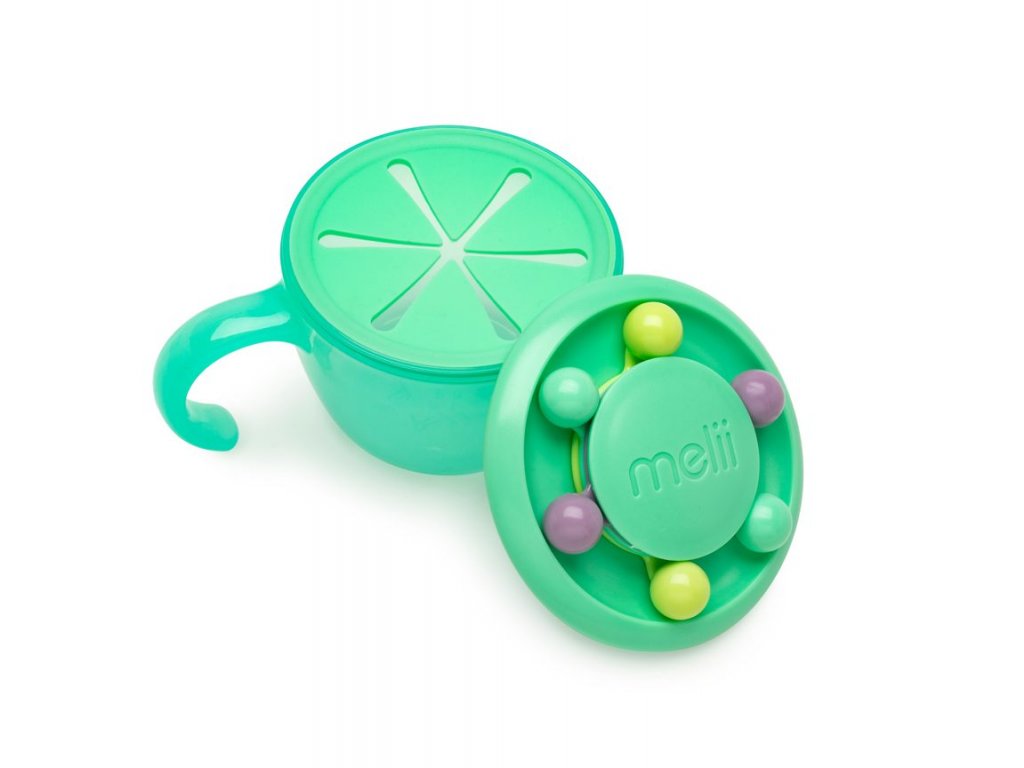 Vyladěná miska svačinu, která funguje i jako zábavná hračka pro malé neposedy! Vaše dítě se může bavit točením, počítáním a hraním si různobarevnými kuličkami připevněnými k nádobce. Rukojeť je navržená přesně pro malé ručičky a povzbuzuje malé děti k samostatnosti. Měkké a flexibilní víčko nedovolí křupkám, piškotům a drobnému ovoci, aby se rozkutáleli po podlaze i když se se Vaše dítě bude otáčet nádobou dnem vzhůru. Mistička má pro jistotu i druhé víčko, které udrží i drobečky a díky tomu i ideální i na výlety a cesty mimo domov. Miska bude od teď vaším skvělým pomocníkem doma i na cestách!