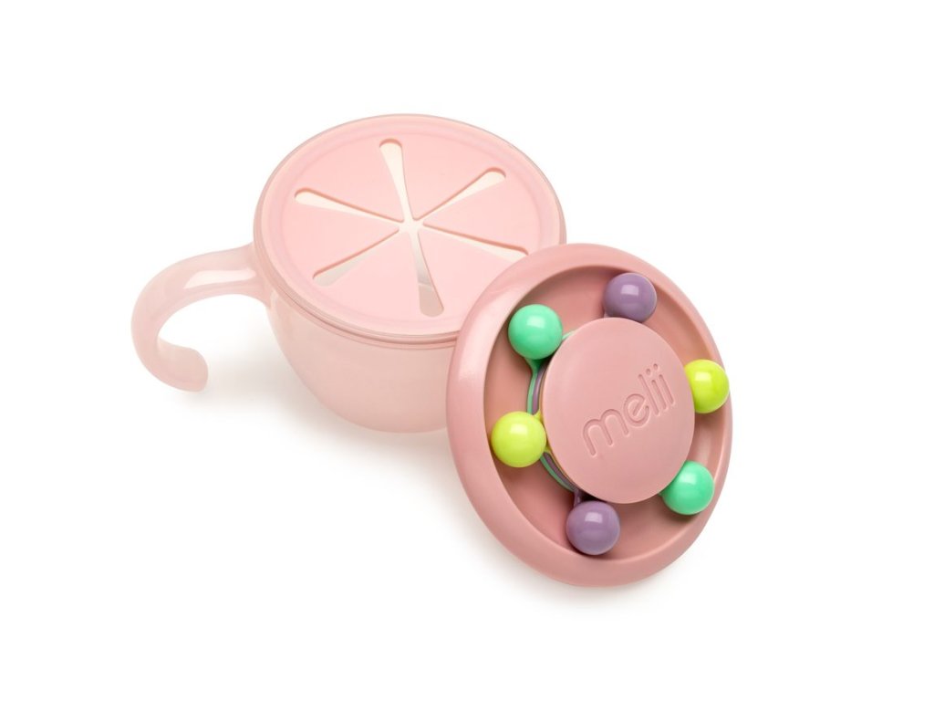 Vyladěná miska svačinu, která funguje i jako zábavná hračka pro malé neposedy! Vaše dítě se může bavit točením, počítáním a hraním si různobarevnými kuličkami připevněnými k nádobce. Rukojeť je navržená přesně pro malé ručičky a povzbuzuje malé děti k samostatnosti. Měkké a flexibilní víčko nedovolí křupkám, piškotům a drobnému ovoci, aby se rozkutáleli po podlaze i když se se Vaše dítě bude otáčet nádobou dnem vzhůru. Mistička má pro jistotu i druhé víčko, které udrží i drobečky a díky tomu i ideální i na výlety a cesty mimo domov. Miska bude od teď vaším skvělým pomocníkem doma i na cestách!