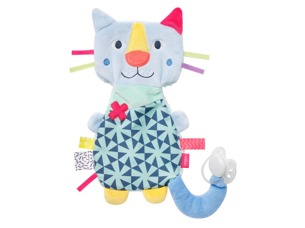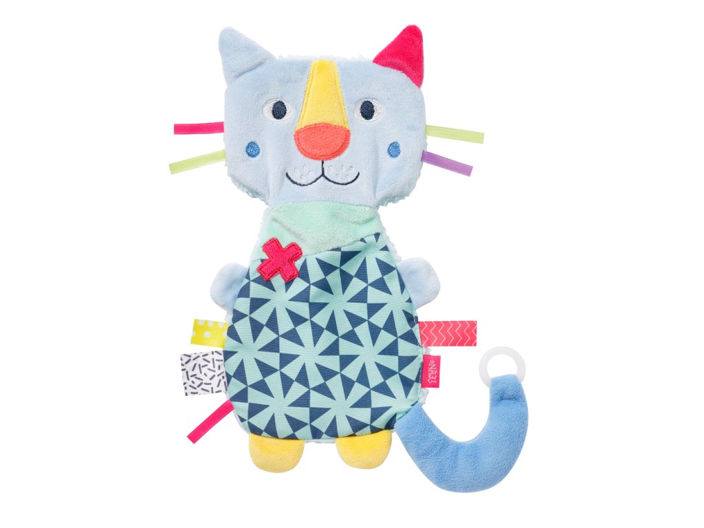 Vďaka zmesi materiálov a stimulujúcemu zvuku skrytého zvinutého papiera to nikdy nebude nuda. Bábätká milujú mačací tvar a jeho načechranú srsť, aby ju uchopili, dotkli sa, objavili a maznali sa! Roztomilú mačičku možno vziať kamkoľvek a sprevádza dieťa pri hraní a snívaniu. Praktický upevňovací krúžok vhodný.
