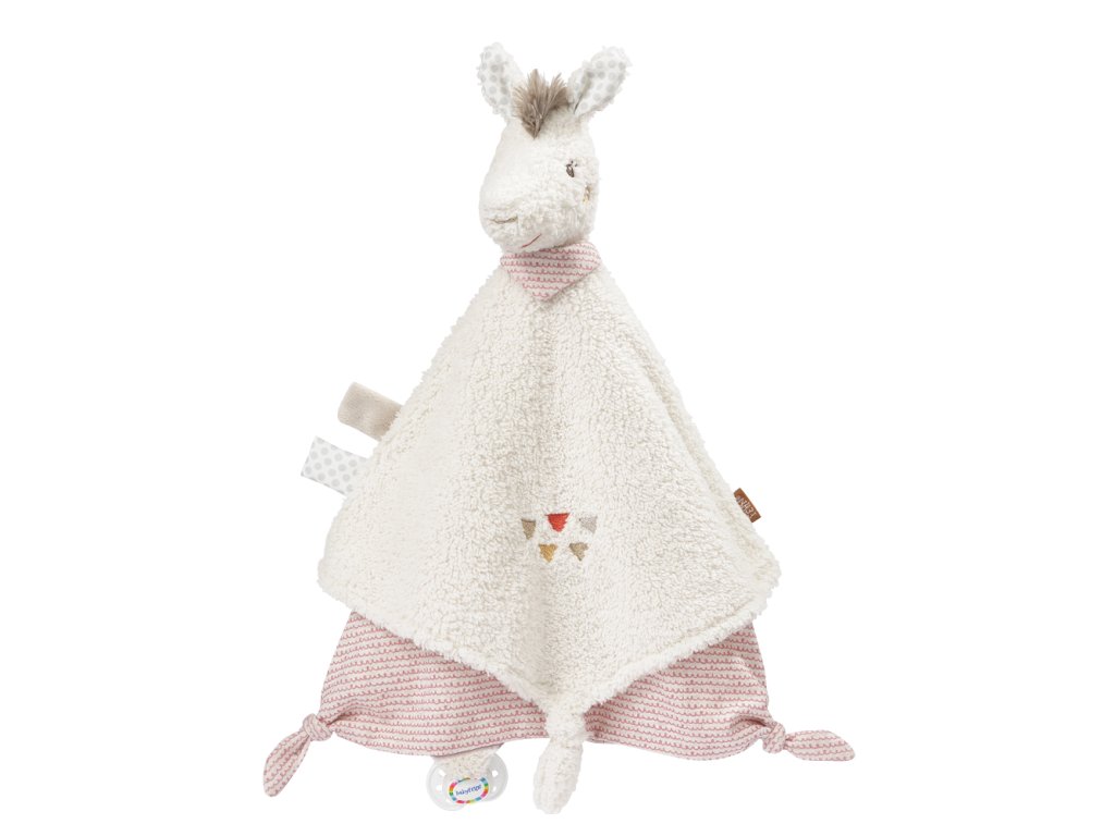 Malá plyšová lama poskytuje pohodlie, teplo, pocit bezpečia a rýchlo sa stane najlepším priateľom vášho dieťaťa. Uzlíky s ospalou hlavičkou podporujú maznanie a dieťa sa ľahko drží. Roztomilý medvedík pomáha zaspať a rýchlo sa tak stáva najlepším priateľom. Vďaka silikónovému krúžku je možné cumlík pripojiť aj na cumlík.