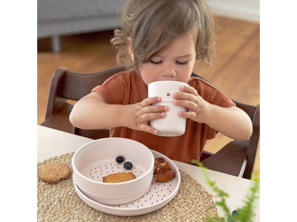 Detský hrnček v krásnom dizajne, vyrobený za použitia trvale udržateľných zdrojov, je určený pre deti od 12 mesiacov.