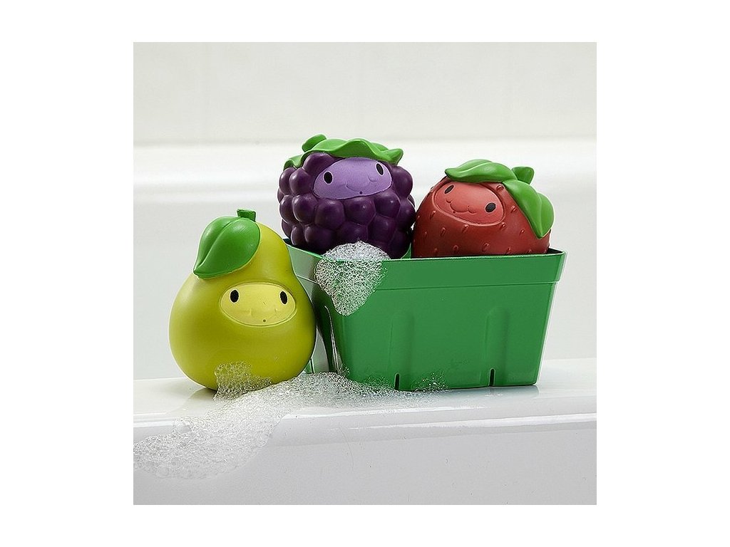 Krásne tvary ovocia a pestré farby rozvíjajú motoriku rúk a tvorivé myslenie pri kúpaní a hraní vo vode. Hračky dávajú dieťaťu prvú predstavu o tvaroch, vlastnostiach a farbách predmetov. Ovocní kamaráti striekajú vodu a pomáhajú učiť mená a farby. Pohodlný tvar hračiek je prispôsobený detským rukám.