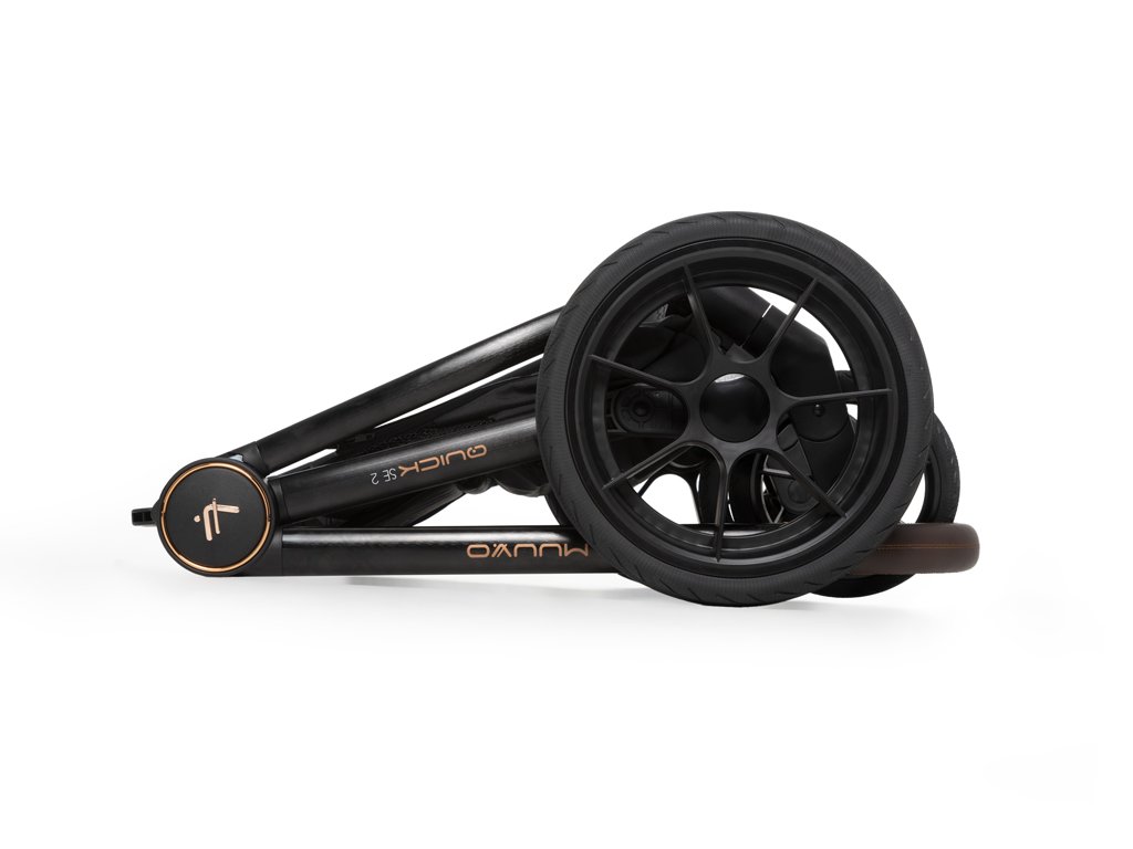 Kočíky Muuvo obsahujú veľké, gélové, bezúdržbové kolesá s odpružením, ktoré poskytujú skvelé podmienky na chôdzu s kočíkom.