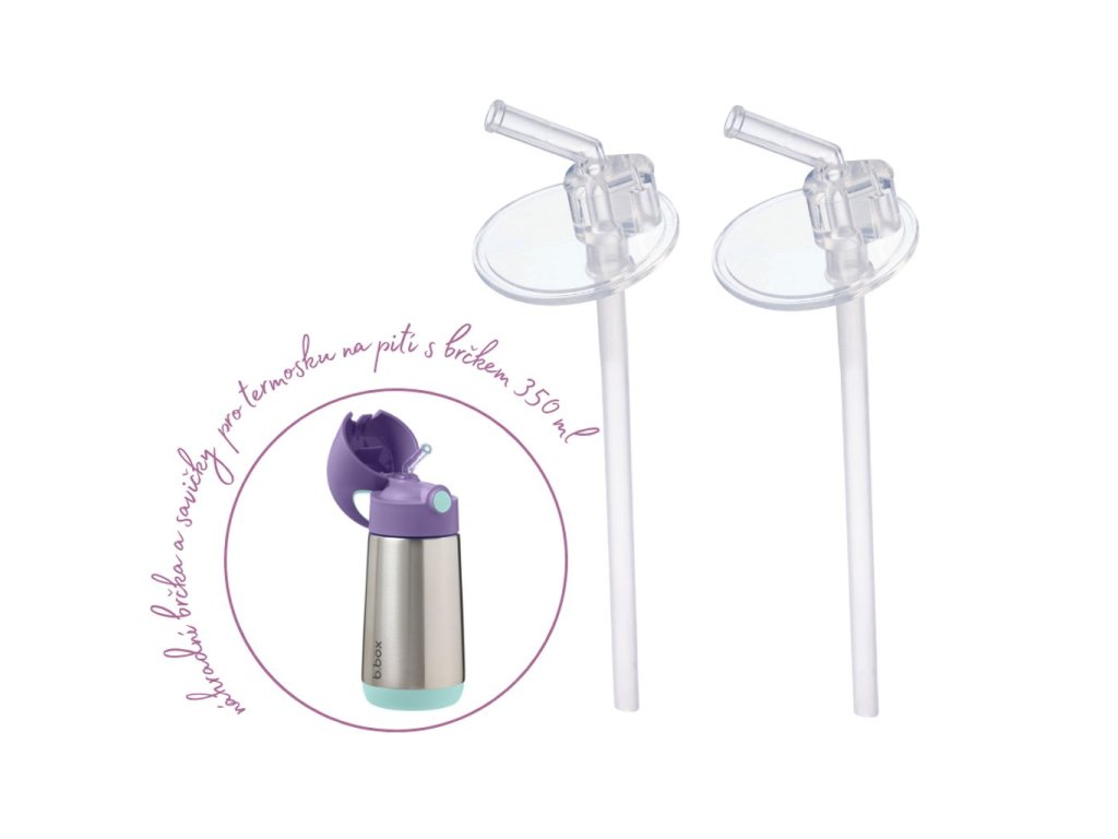 Balení obsahuje 2ks náhradní savičky včetně brček, které jsou určené pro termosku na pití s brčkem o objemu 350 ml od značky b.box.