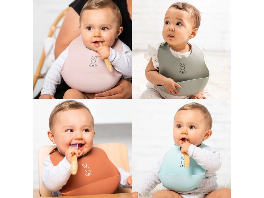 Pre malých gurmánov: so silikónovými podbradníkmi Nattou v rôznych trendových farbách môžu rodičia a deti bezstarostne stolovať. Podbradník s veľkým rozsahom otvárania a gombíkmi, sa dá veľmi pohodlne nasadiť v 6 rôznych veľkostiach. Dokonale sa prispôsobí dieťaťu a vďaka mäkkému materiálu sedí pohodlne a s dostatočným priestorom okolo krku.