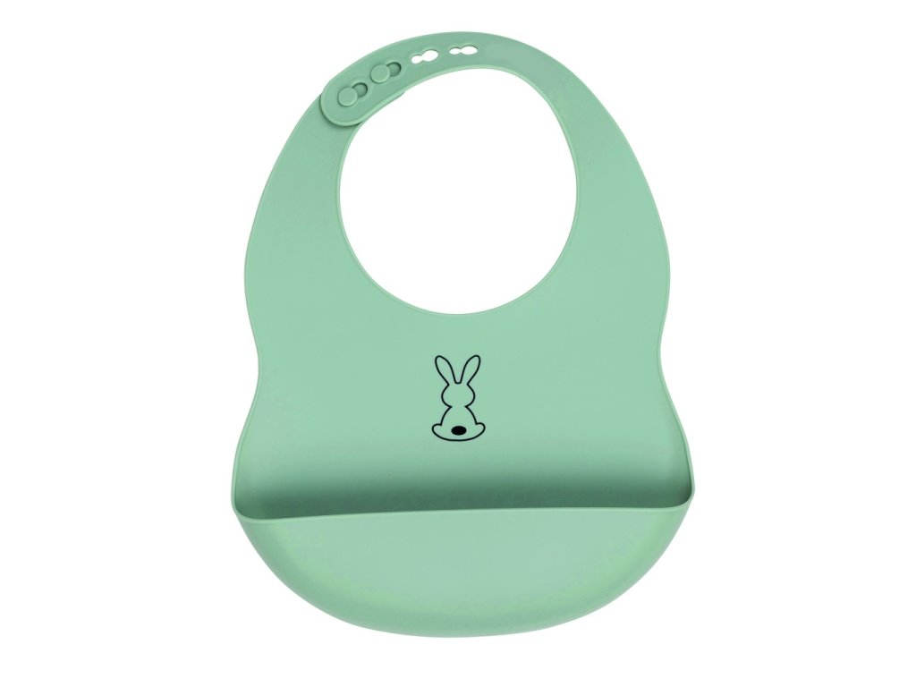 Podbradník Nattou vyrobený z pružného silikónu s motívom roztomilých králikov a praktickou zbernou časťou zabezpečí kŕmenie a jedenie vášho dieťatka bez zbytočného stresu z neporiadku .