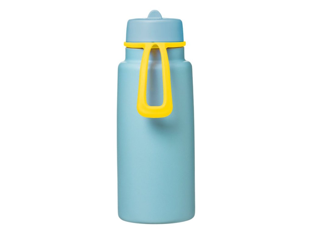 Materiál: lahev, brčko uvnitř lahve- nerezová ocel; víčko a vnější brčko - PP (polypropylen) a TPE (termoplastický elastomer); rukojeť - silikon