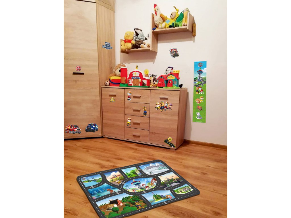 Tento veľmi mäkký a jemný koberec pozýva deti k hre. Zobrazuje postavy z kresleného filmu Tlapková patrola. Deti milujú Tlapkovú patrolu a všetko okolo nej.