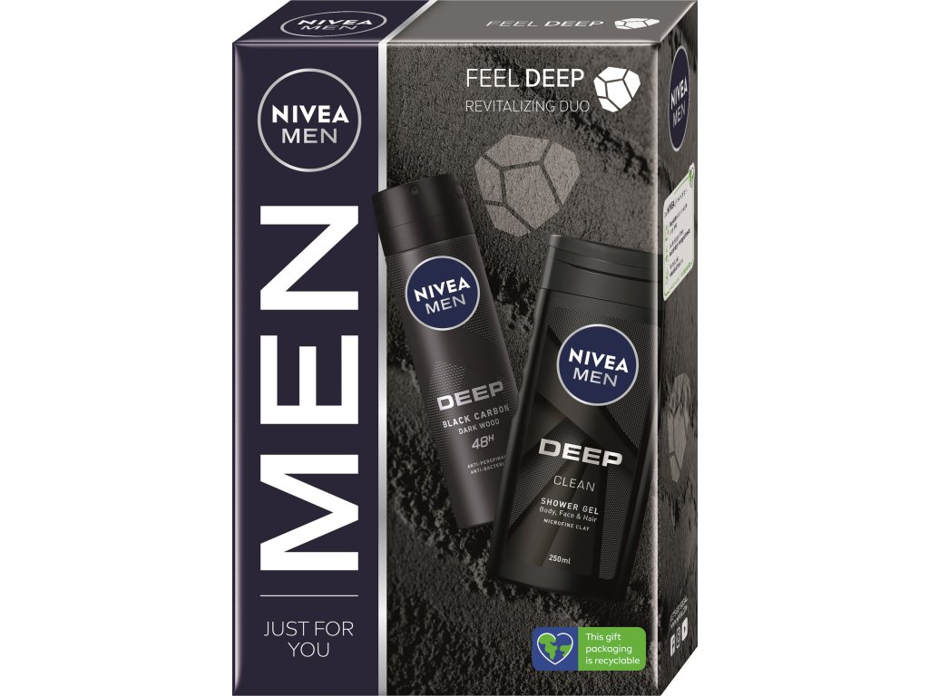 Kosmetická sada "Nivea Men Feel Deep" je špeciálne vytvorená pre mužov, ktorí hľadajú komplexnú starostlivosť o svoju pokožku a zároveň chcú cítiť intenzívnu sviežosť a energiu počas svojho denného rituálu pri starostlivosti.