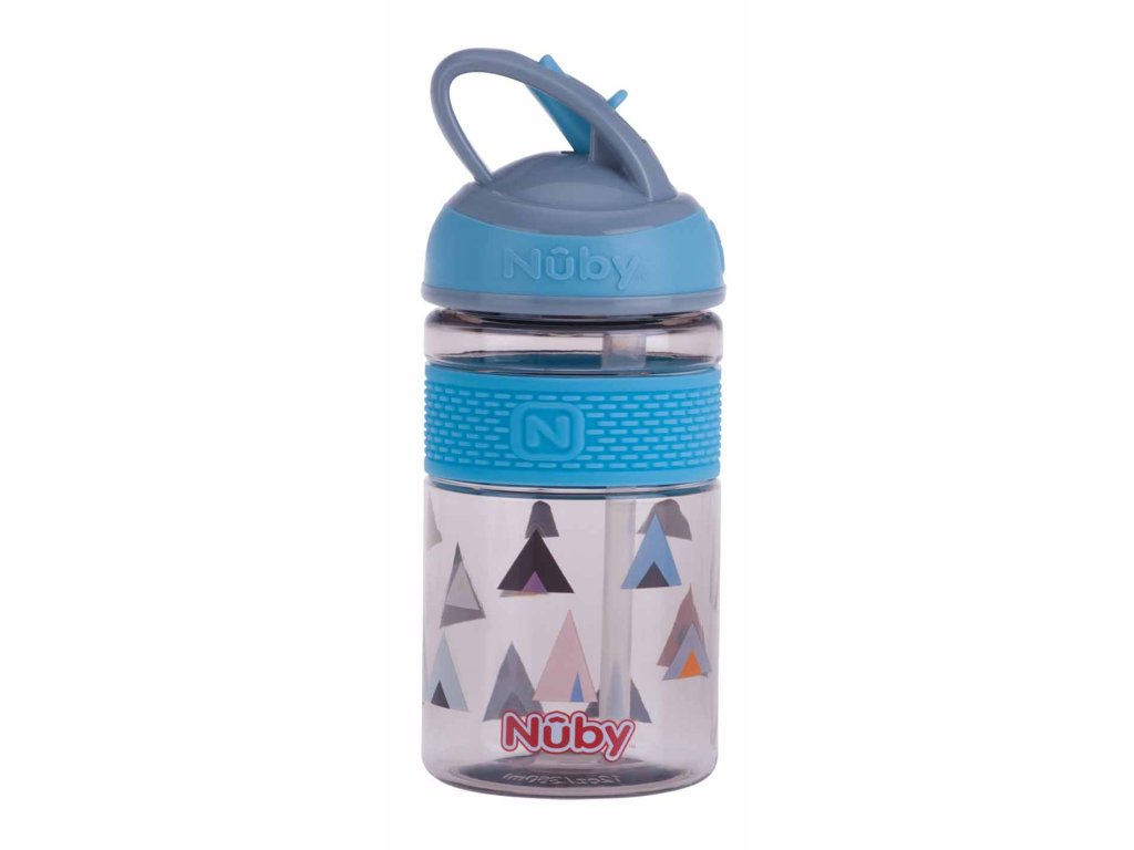 NUBY Fľaša športová 2v1 s tvrdou sklopiteľnou slamkou, 360 ml, modrá, 3+