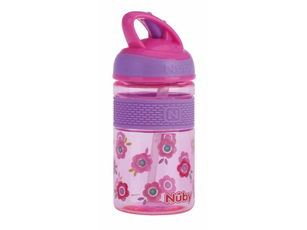NUBY Fľaša športová 2v1 s tvrdou sklopiteľnou slamkou, 360 ml, ružová, 3+