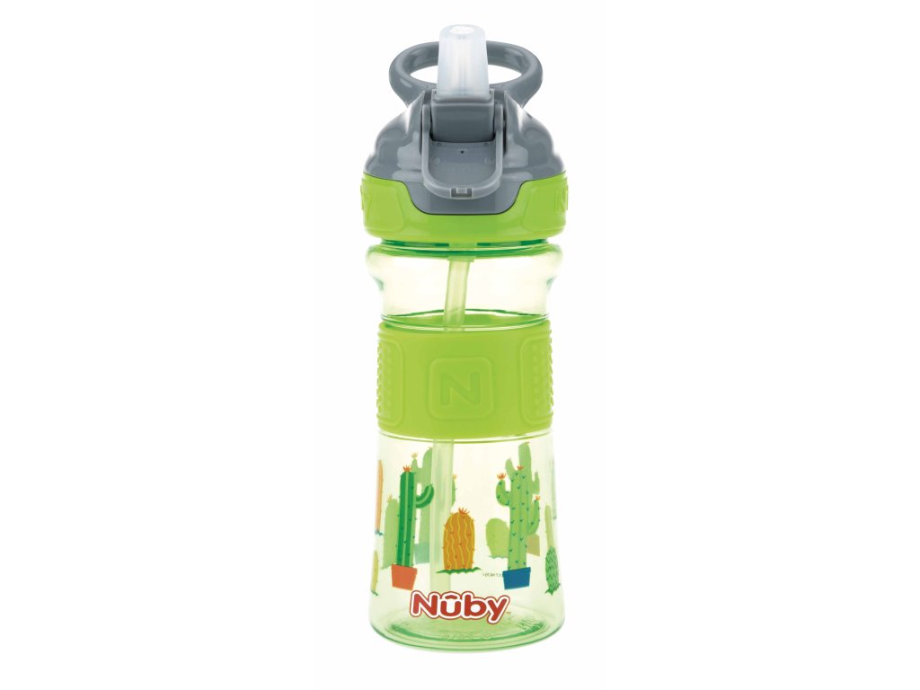 NUBY Fľaša športová s mäkkou sklopiteľnou slamkou 360 ml, zelená, 3+
