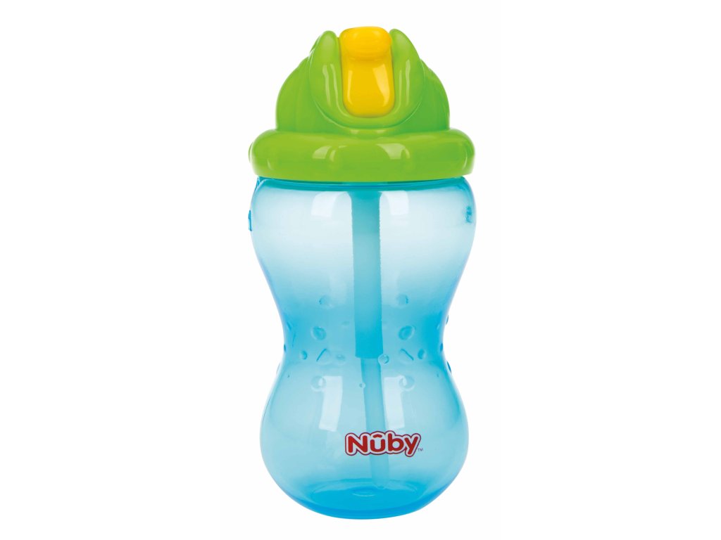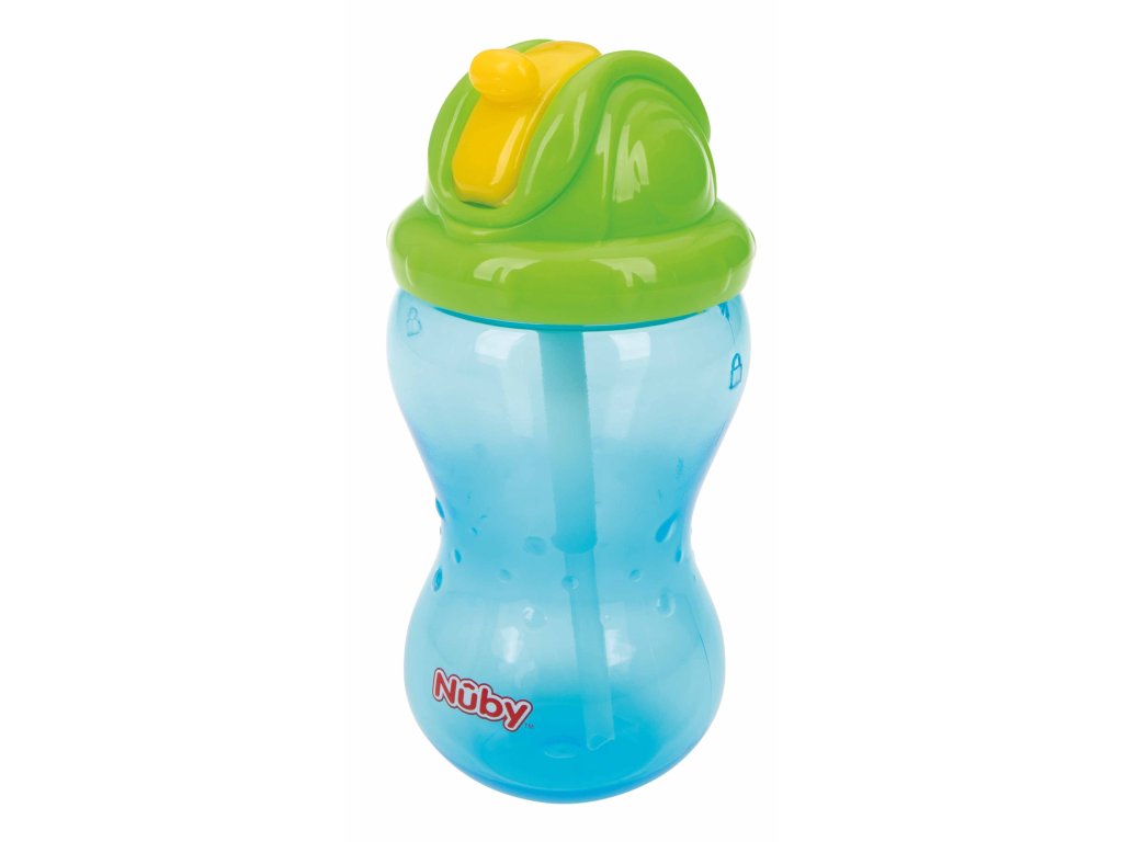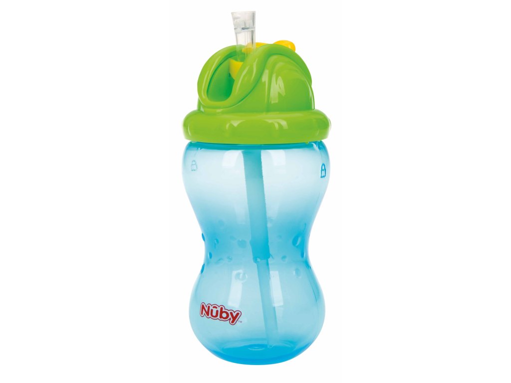 NUBY Hrnček netečúci se sklápacou slamkou a 360ml, 12 m+ modrý