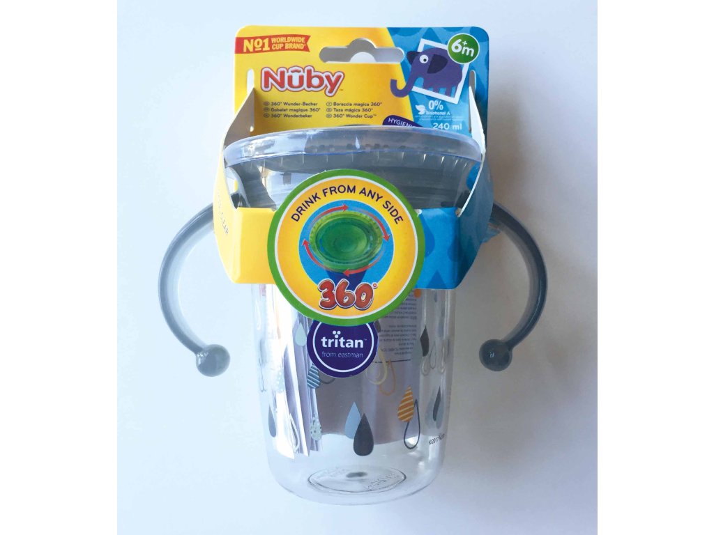 NUBY Hrnček Tritan netečúci s uškami 360°, 6 m+ svetlo sivý
