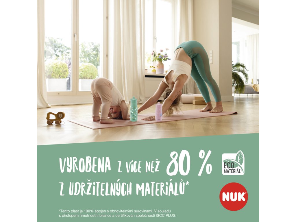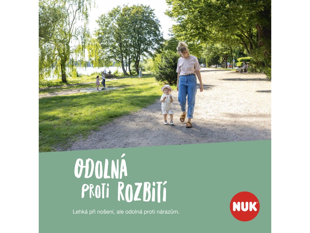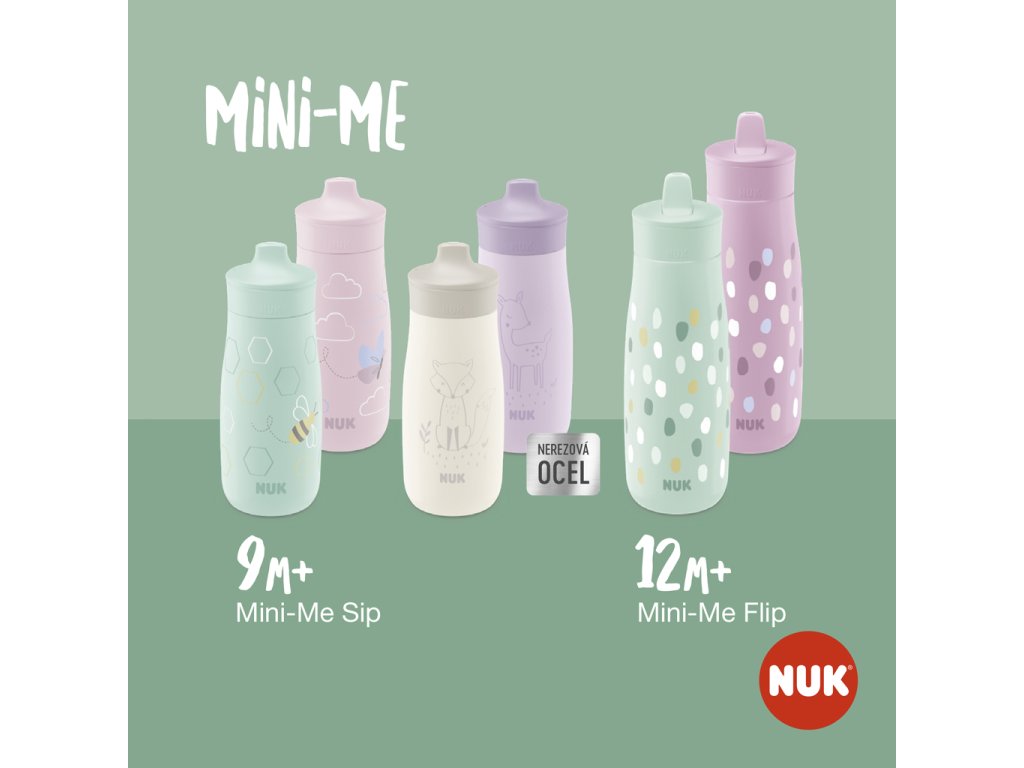 Fľaša NUK Mini-Me Sip, odolná proti hryzeniu, neteká, 300 ml, od 9 mesiacov, bez BPA, 1 kus - Spoľahlivý spoločník na každý deň - pre deti od 9 mesiacov - S hrnčekom na pitie odolným proti odhryznutiu, ktorý odoláva drobným zúbkom dieťaťa. - Fľaša na pitie v modernom dizajne - vyrobená z 80 % z udržateľných materiálov - Možno umývať v umývačke riadu, netečie, s ochranným viečkom na cesty - Možno kombinovať so všetkými výrobkami z radu NUK Mini-Me, objem 300 ml, bez BPA Fľaša NUK Mini-Me Sip - moderná detská fľaša na pitie Je príjemné, keď dojčenská fľaša na pitie osloví nielen deti, ale aj rodičov. Nová fľaša NUK Mini-Me Sip je vhodná pre deti od 9 mesiacov. Vhodná pre deti - moderným a minimalistickým spôsobom. Praktická a štýlová zároveň. Plast odolný proti rozbitiu je vyrobený z viac ako 80 % z udržateľných materiálov. Inovatívny cumlík hravo odolá detským zúbkom. Jasný záväzok k udržateľnosti a kvalite. Tento plast je kombinovaný so 100 % obnoviteľnými surovinami. V súlade s prístupom hmotnostnej rovnováhy a certifikovaný spoločnosťou ISCC PLUS. Váš vzhľad - váš životný štýl NUK Mini-Me je systém, ktorý rastie spolu s vaším dieťaťom. Vyberte si medzi nerezovou oceľou a nerozbitným plastom. Vyberte si z rôznych veľkostí. Vyberte si z pevného alebo vyklápacieho pítka. A môžete si zostaviť presne takú fľašu, akú potrebujete pre svoje dieťa. Nech už si vyberiete akýkoľvek model, fľaša netečie a je veľmi odolná. Stvorená pre prvé dobrodružstvá a všetko, čo príde po nich. Nová fľaša NUK Mini-Me predstavuje vzhľad a životný štýl, ktorý by ste radi zdieľali so svojimi deťmi. Ľahko sa čistí Na konci vzrušujúceho dňa sa fľaša veľmi ľahko čistí. Stačí fľašu rozobrať a umyť v teplej vode. Potom ju opláchnite a vytrepte prebytočnú vodu. Rozloženú fľašu nechajte voľne vyschnúť. Takto je fľaša v okamihu pripravená na ďalší deň. Fľašu je možné umývať aj v umývačke riadu. Materiál však môžu poškodiť agresívne umývacie prostriedky.