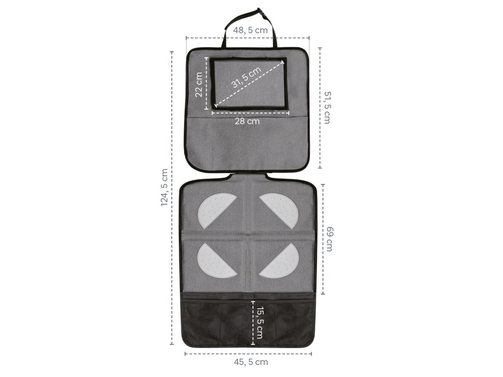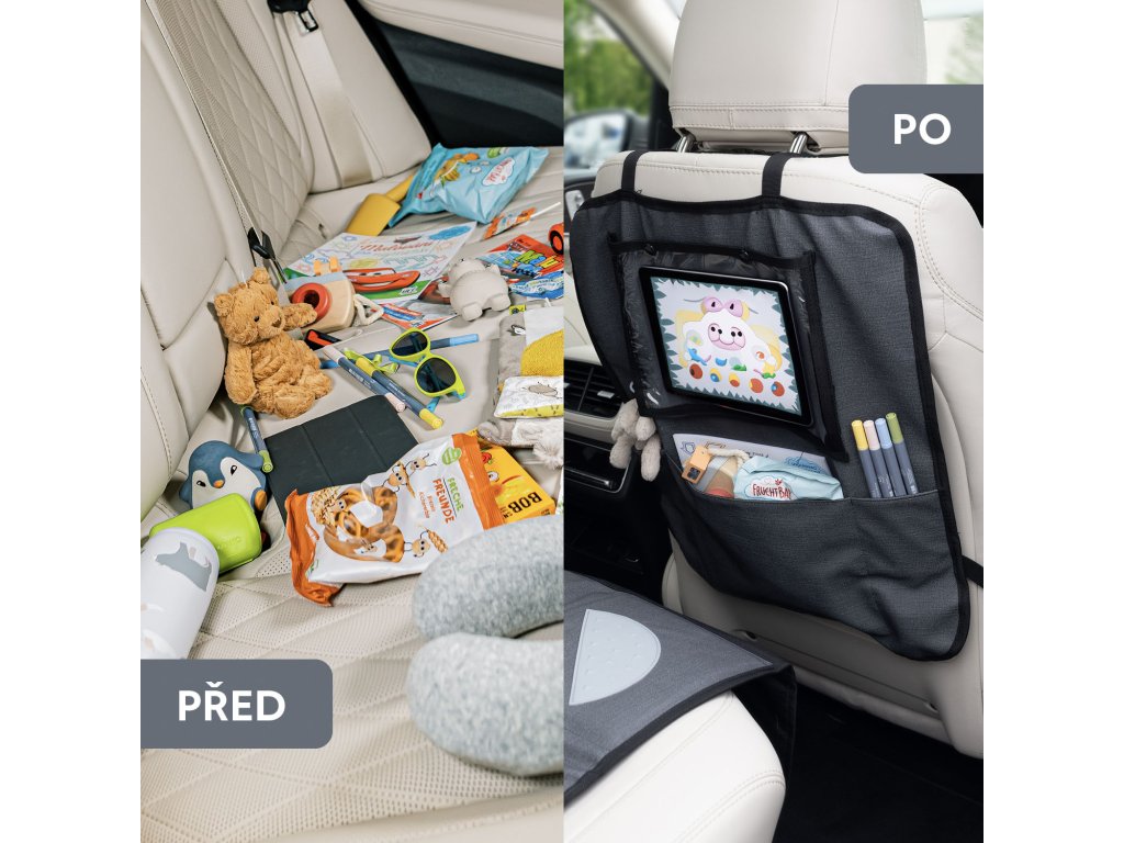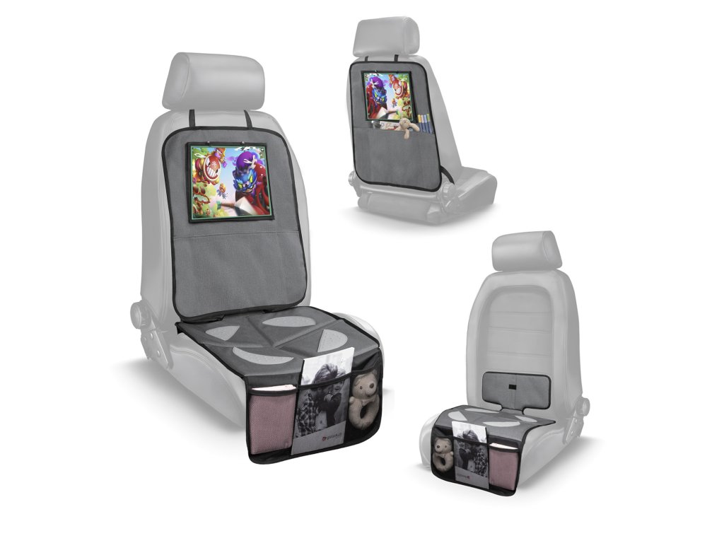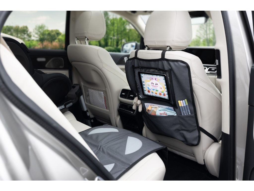 Ochrana sedadlá pod autosedačku s vreckom na tablet umývateľný, Grey