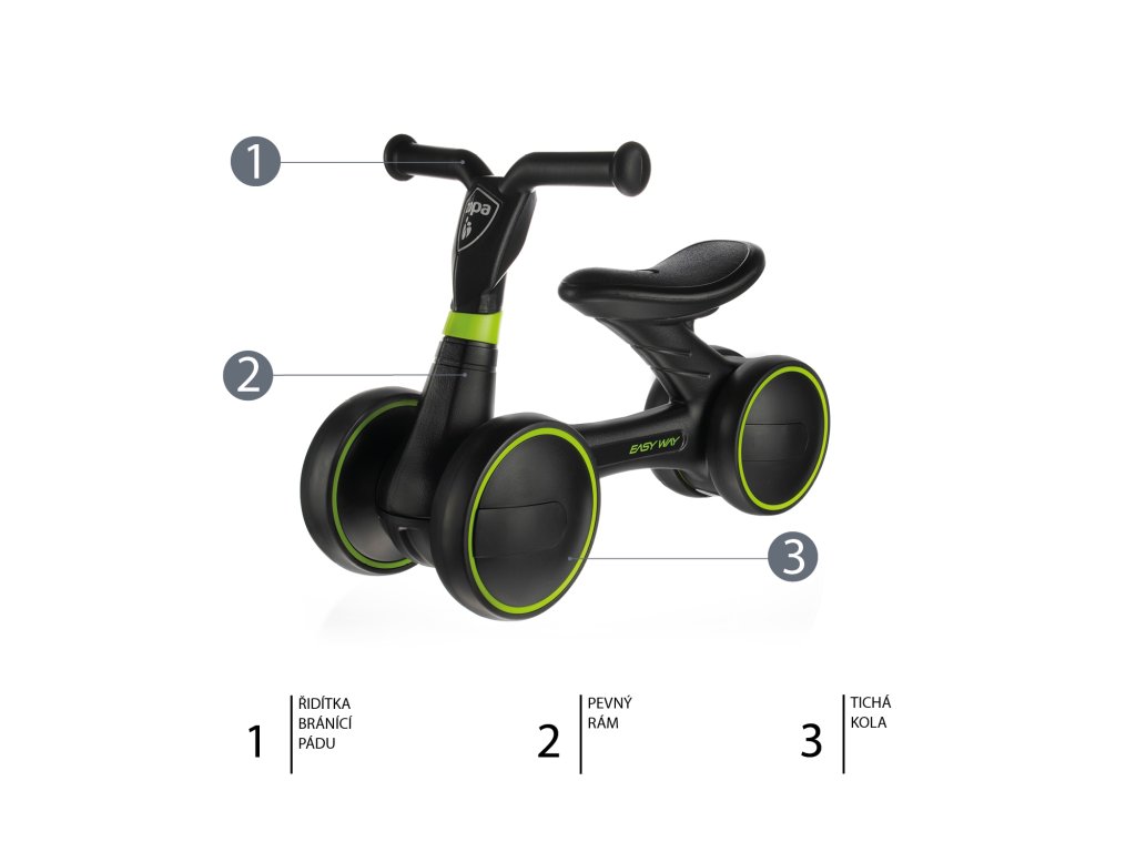 Odrážadlo Easyway je novinkou pre zábavu vašich detí od 18 mesiacov. Športový dizajn sa opiera o robustnú konštrukciu s pevným rámom. Samozrejmosťou sú tu kolieska s technológiou „silent wheels“ pre tichú a bezhlučnú jazdu. Voliť môžete z niekoľkých farebných prevedení.