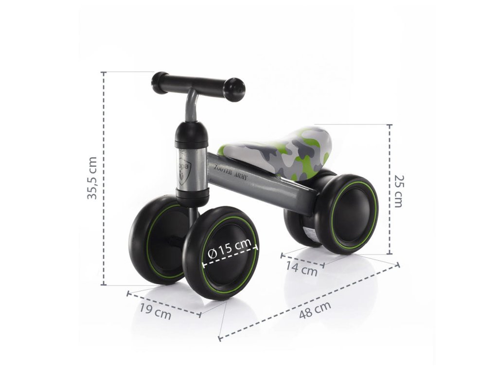 Zooter je odrážadlo pre deti od 18 do 24 mesiacov. Jeho konštrukcia je vďaka kovovému rámu veľmi pevná, pohodlie dieťaťa zaistí mäkké vypchaté sedadlo, technológia koliesok „silent wheels“ zaručí tichú jazdu.
