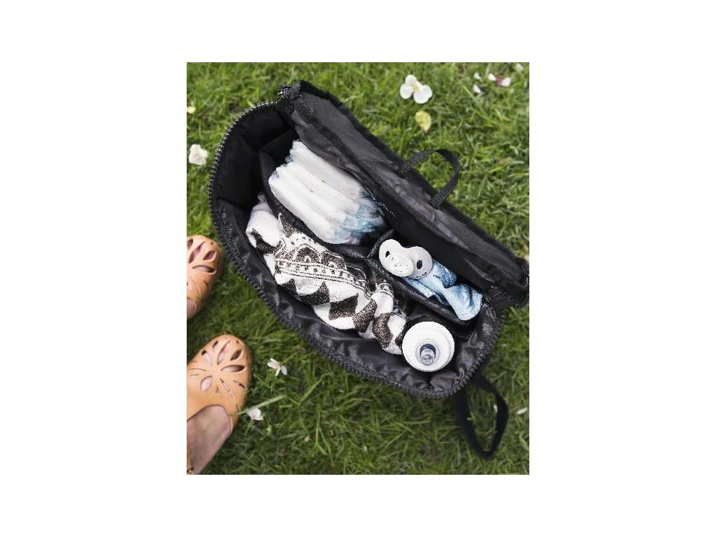 Nový a praktický organizér lze jednoduše připevnit na madlo kočárku, aby jste měli všechny své věci tam, kde je potřebujete, a vždy, když je potřebujete. Víko se zipem odlišuje tento organizér od ostatních. Zavřete jej a všechno bude vypadat elegantně a čistě. Uvnitř víka je háček, za který ho můžete pověsit na zeď, abyste získali snažší a hygieničtější přístup ke všemu. Samozřejmností jsou vnější kapsy pro váš telefon, klíče a peněženku.
