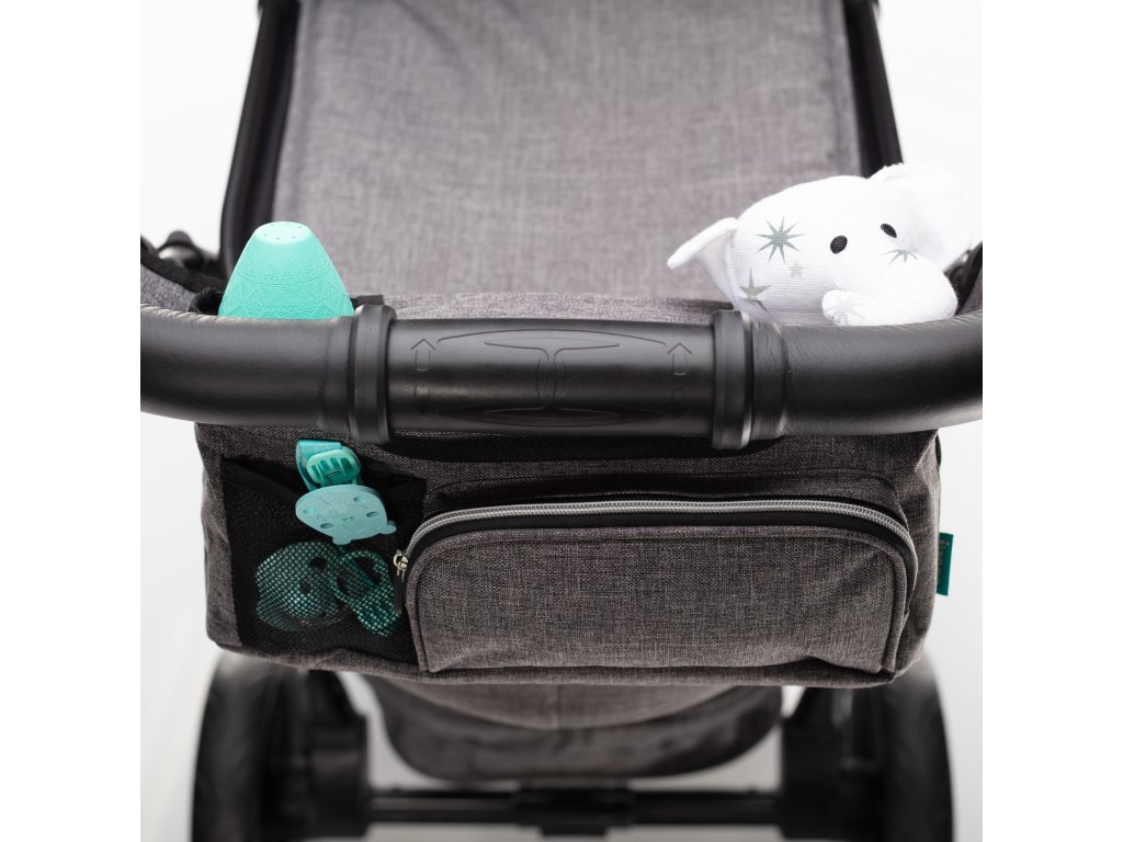 Popis: Organizér nevyhnutnosťou, ktorý je veľmi prehľadný, praktický a šik udrží všetky potrebné veci na svojom mieste. Je rozdelený na tri časti: centrálne väčšiu kapsu na zips a postranné izolované otvory na fľaše s nápojmi. Organizér je z priedušného, dobre čistiteľného materiálu.