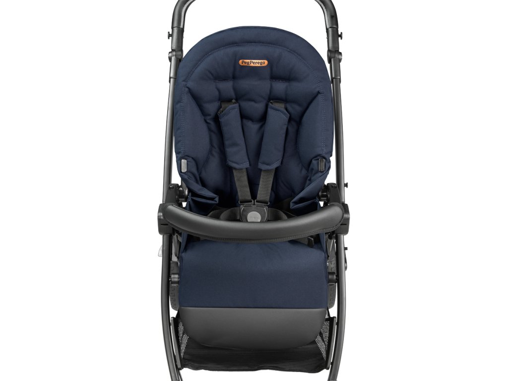 Pohodlí a funkčnost zaručuje prostorný sedák, 5bodový pás a přední madlo z ekokůže, která se snadno otevírá a zavírá.