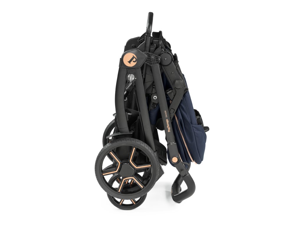 Kočárek Book se otevírá a zavírá pouze jednou rukou se sedákem zajištěným v obou směrech. Složený kočárek stojí vzpřímeně sám o sobě a zabírá málo místa.