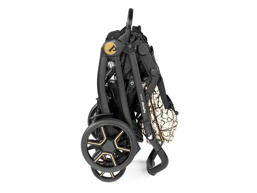 Kočárek Book se otevírá a zavírá pouze jednou rukou se sedákem zajištěným v obou směrech. Složený kočárek stojí vzpřímeně sám o sobě a zabírá málo místa.